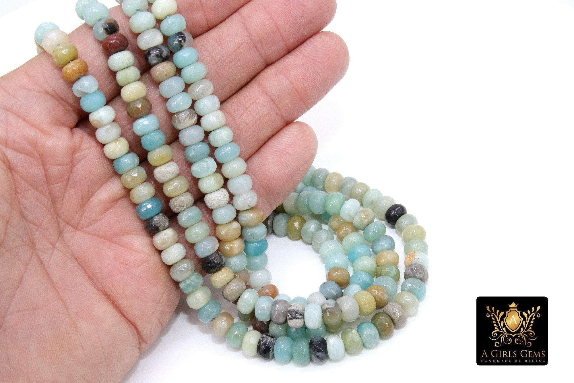 Faceted Natural Amazonite Beads, Rondelle Beads in Light Blue and Beige blends BS #25, sizes 6 x 8 mm 15.3 inch Strands