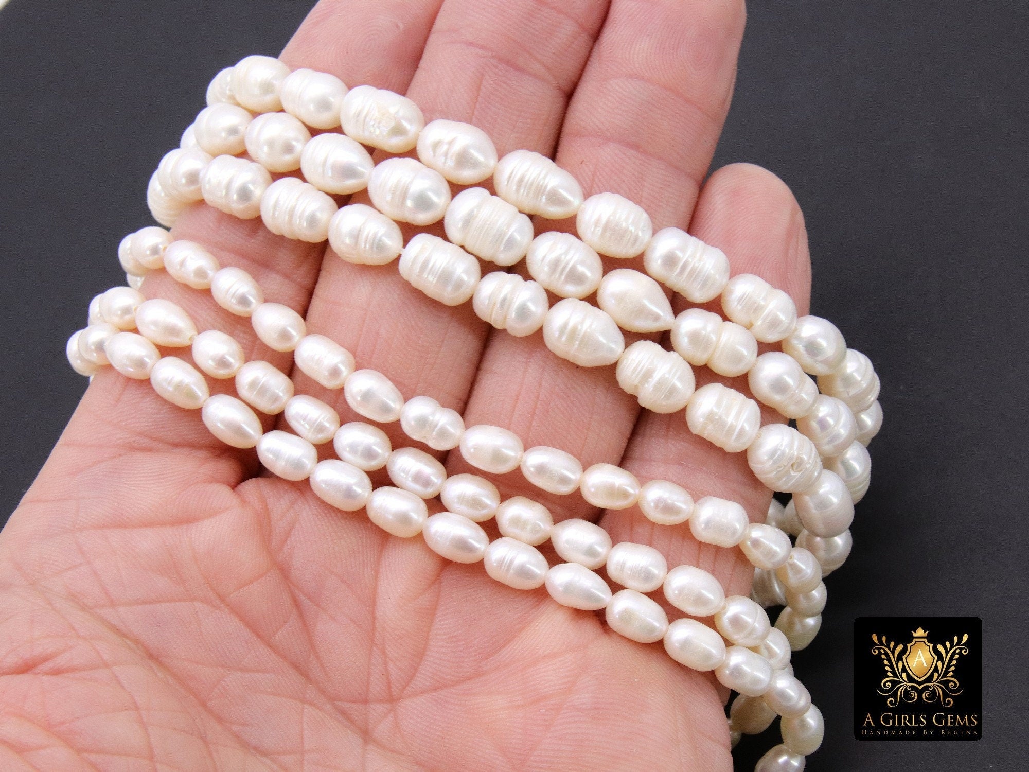 Genuine Pearl Bead Strands, 6 mm 12 mm White Baroque Pearl Beads BS #295, Oval Freshwater Rice Pearl