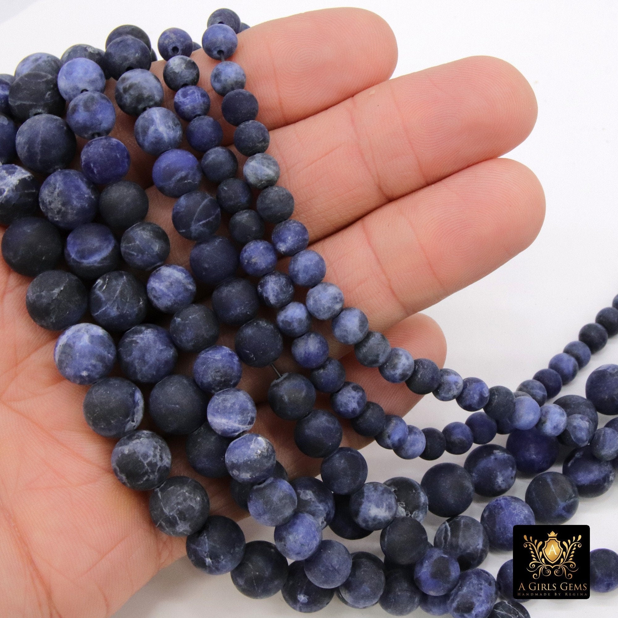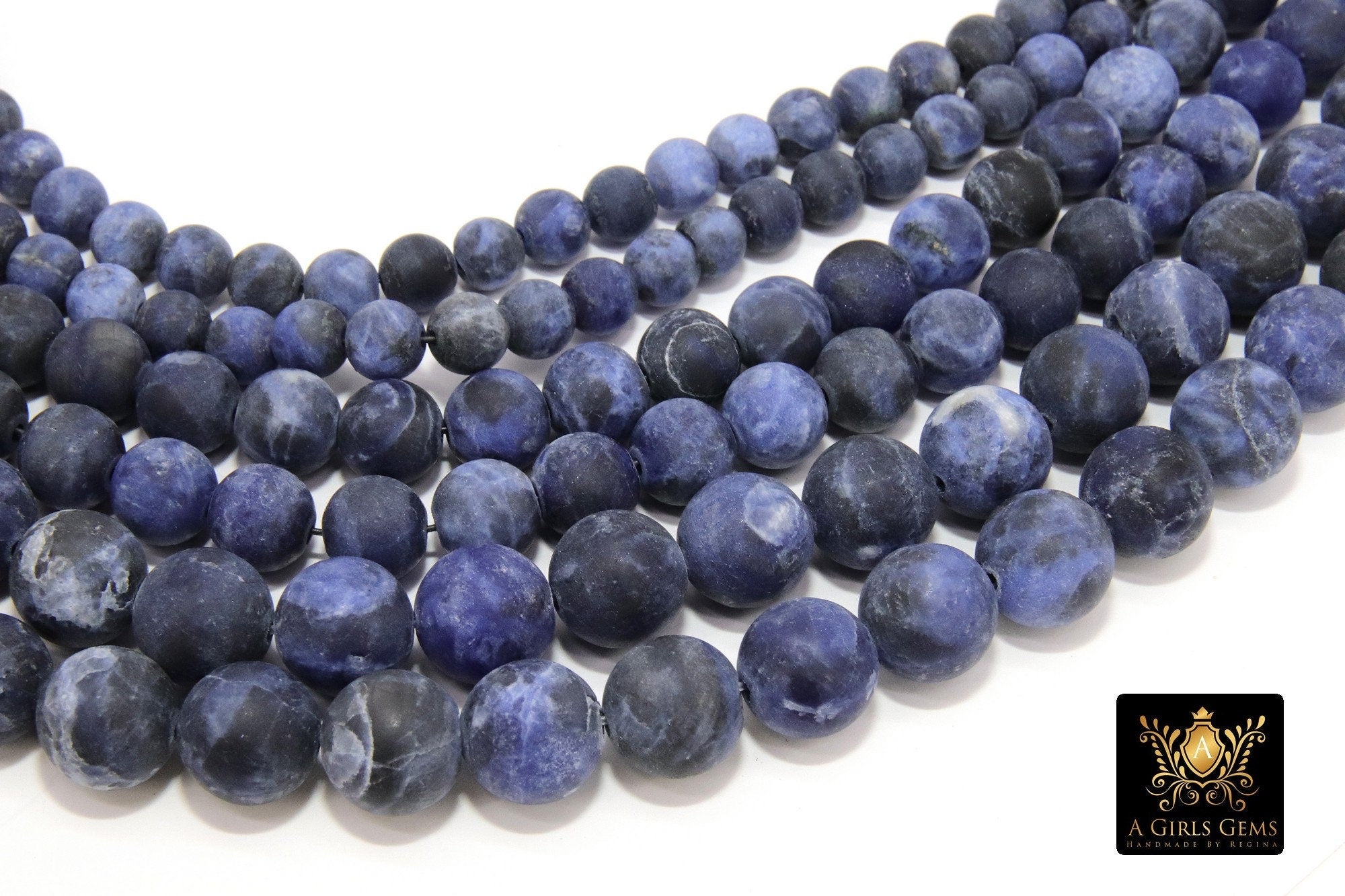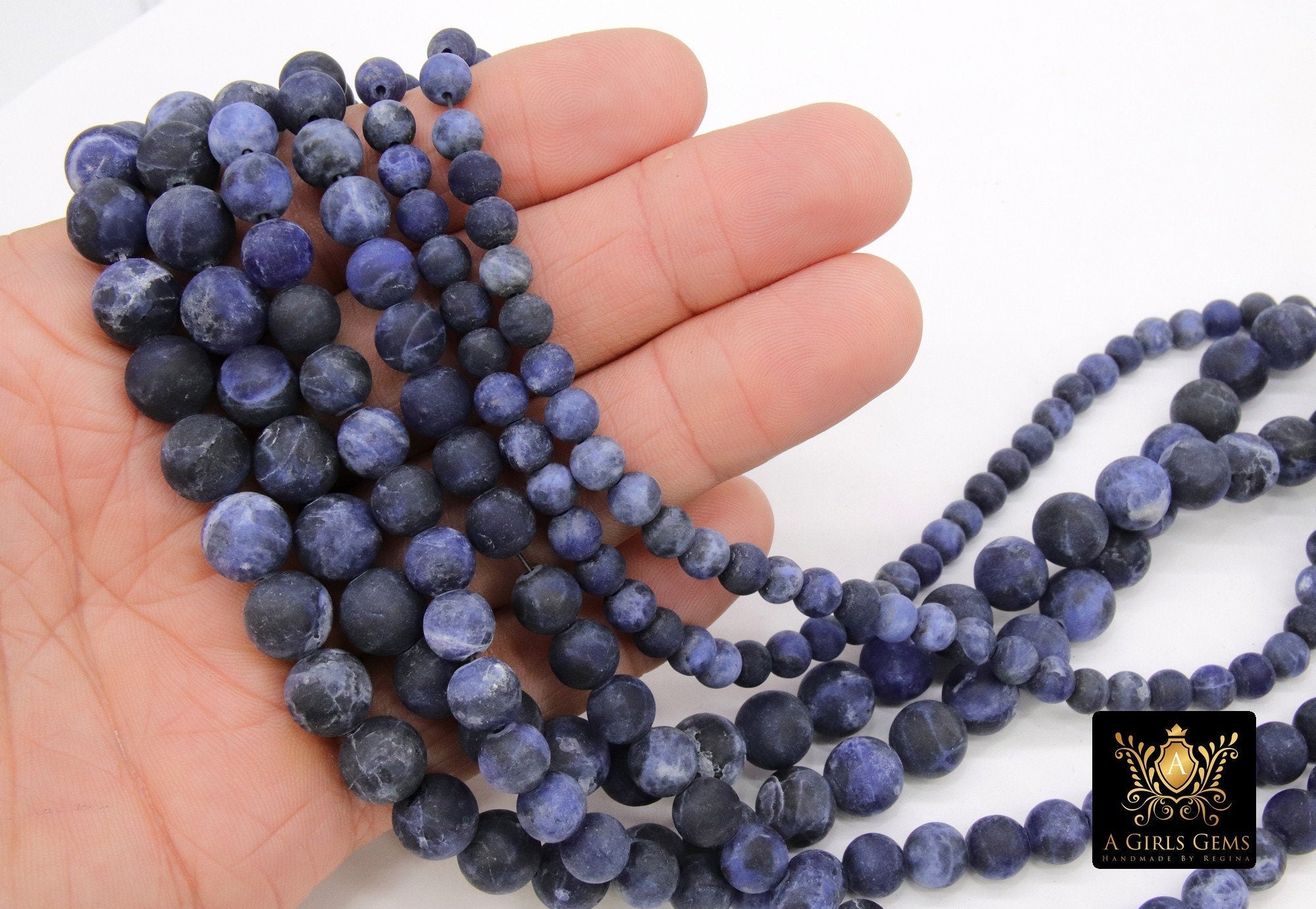 Matte Sodalite Blue Beads, Frosted Navy and Black Round Beads BS# 129, size 6 mm 8mm 10 mm 15 in FULL Strands