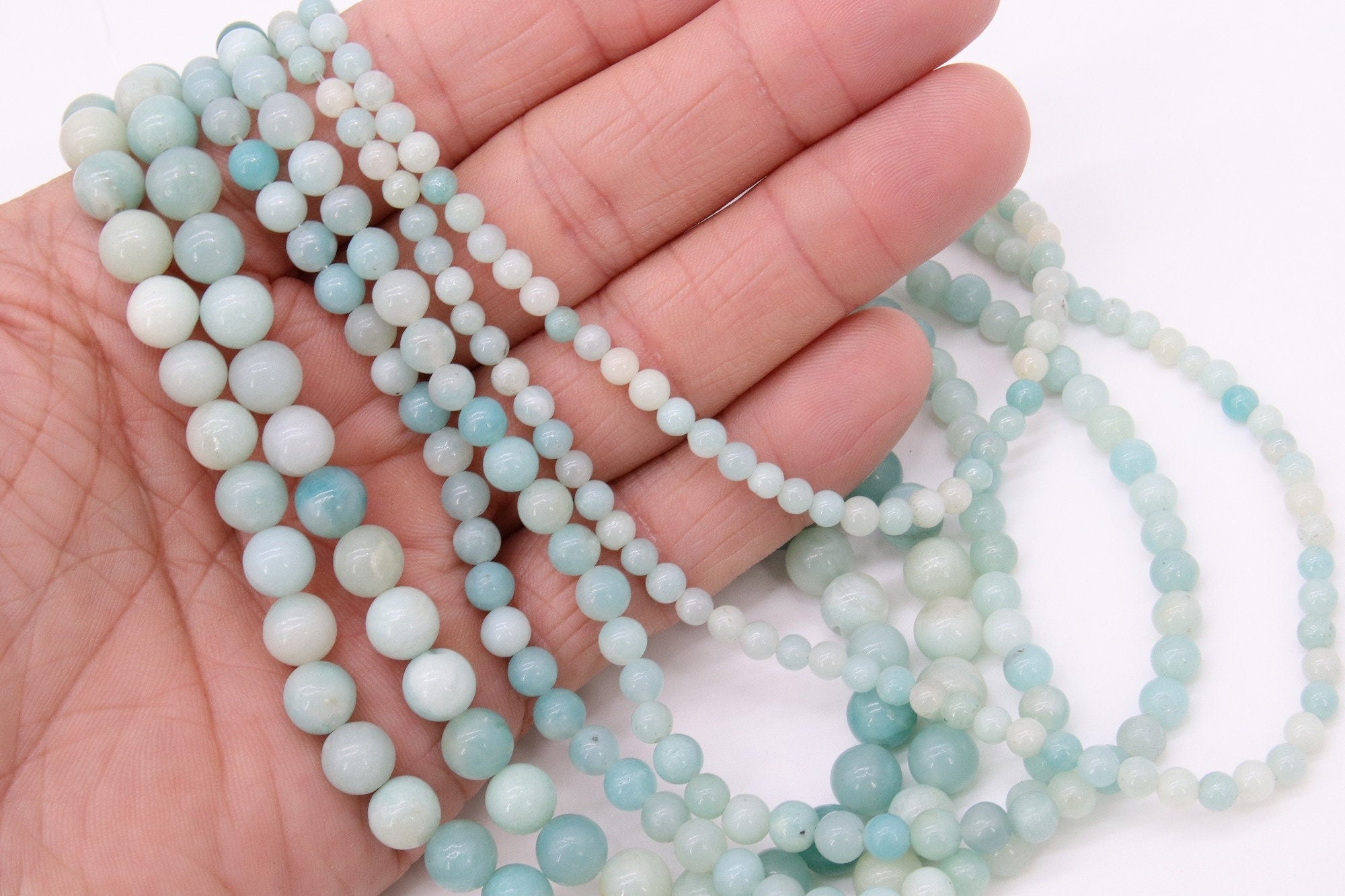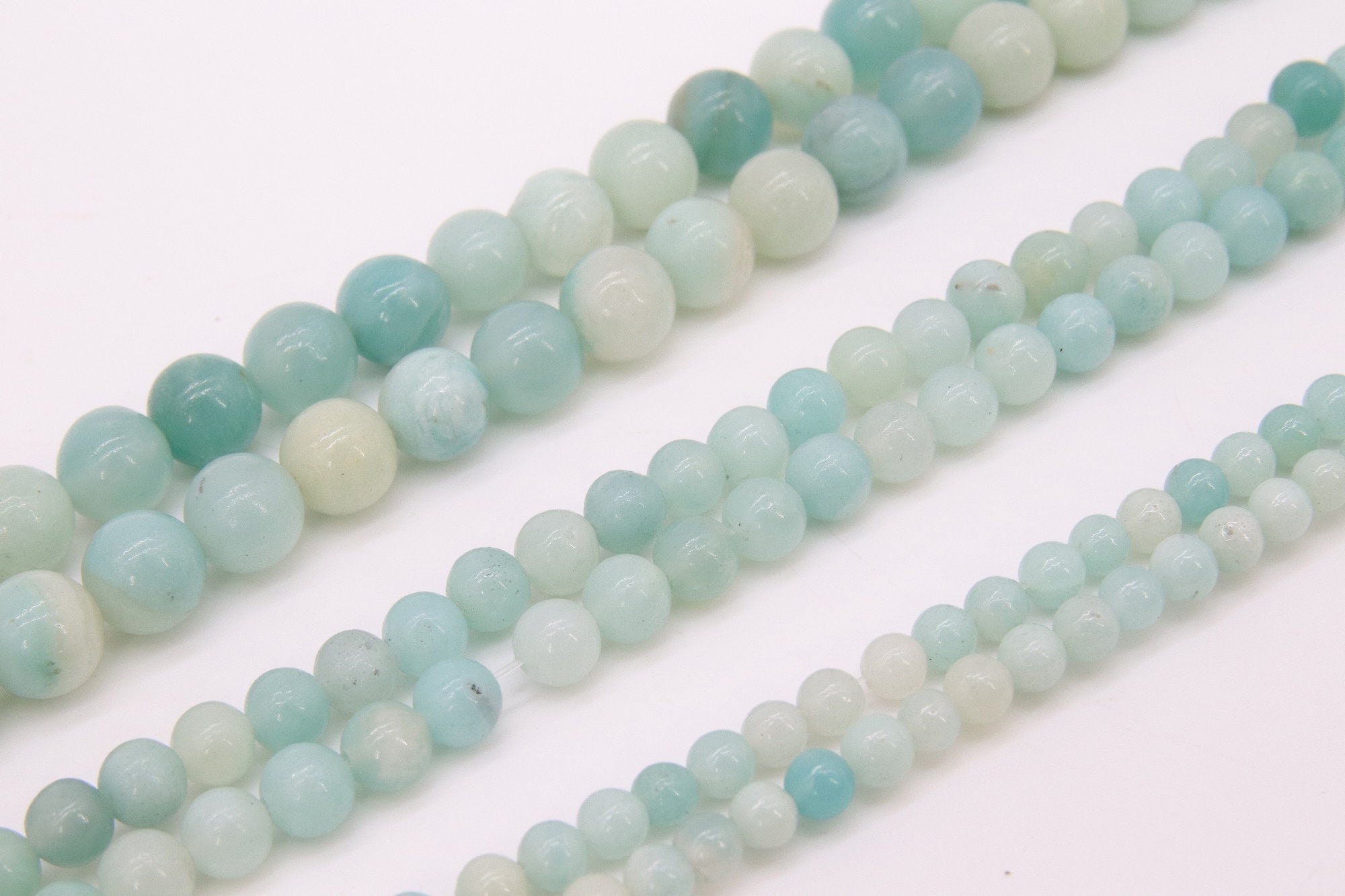 Full Strand of Grade A Blue Amazonite Beads in 4 mm, 6 mm, 8 mm