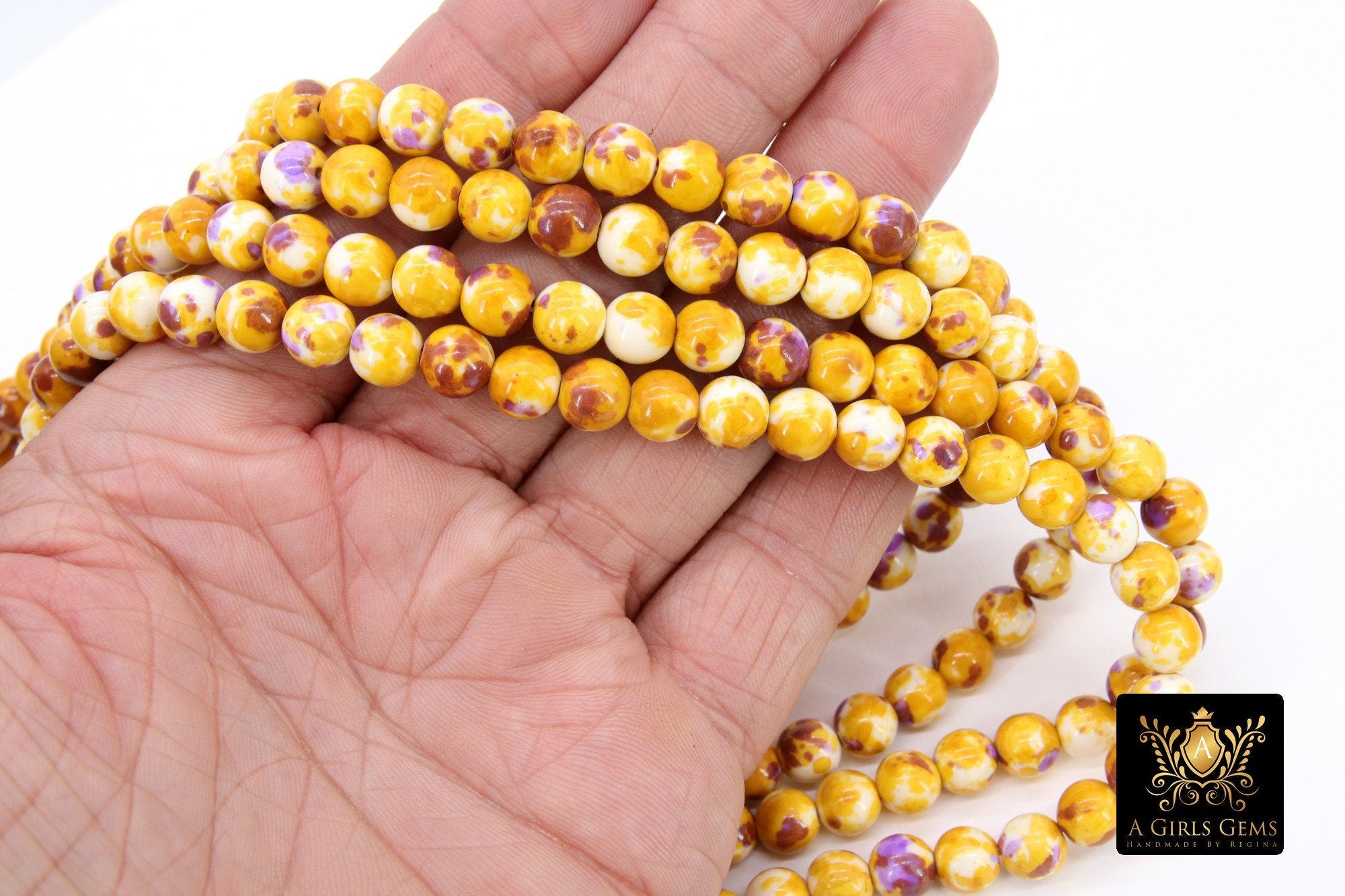 Purple and Gold Beads, Smooth Mixed Yellow Purple Jade Beads BS# 97, LSU Jewelry Beads sizes 6 mm or 8 mm 15.75 inch Strands
