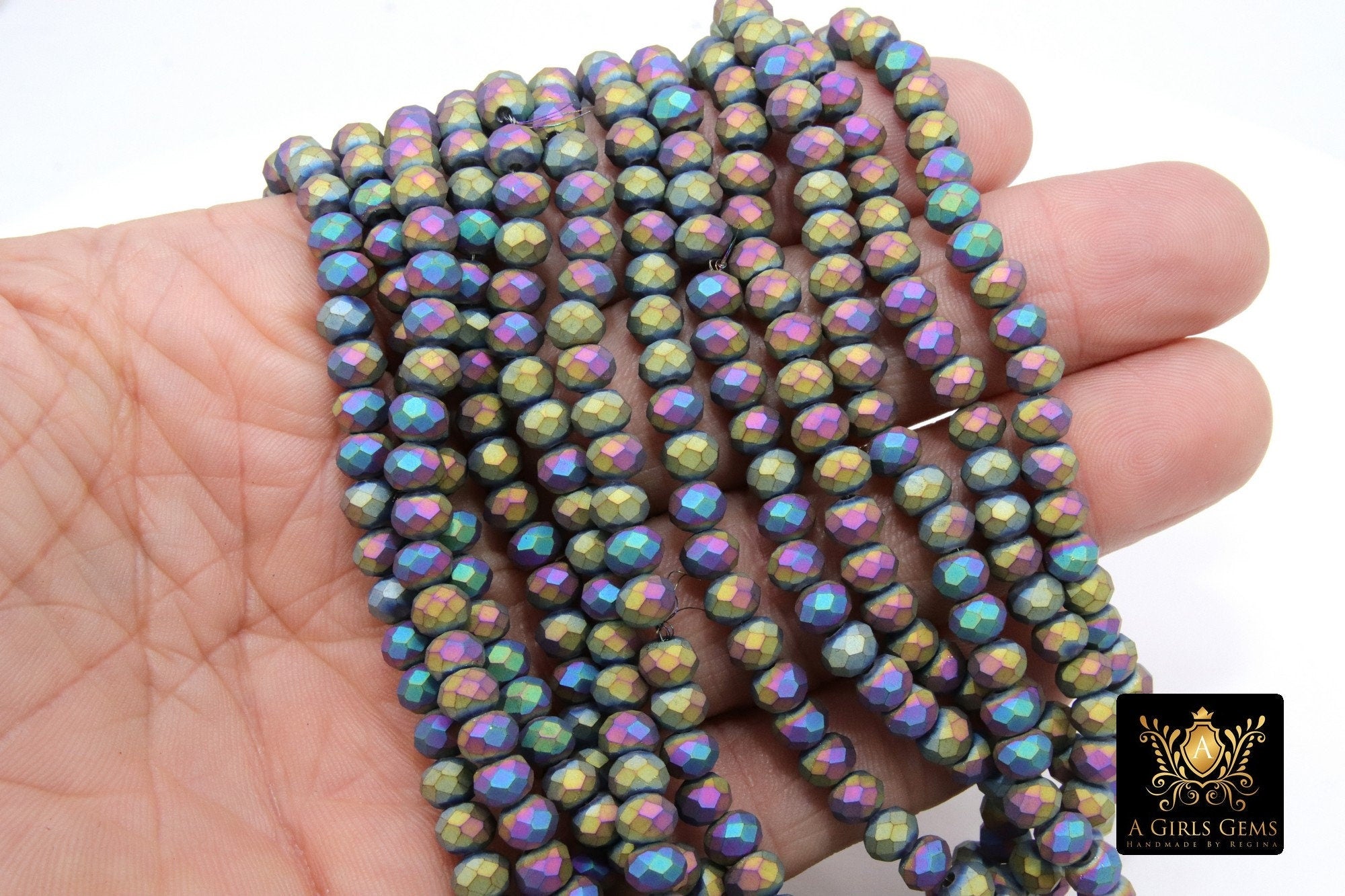 Faceted Matte Rainbow, Purple, Green Blue Electroplated Crystal Rondelle Glass Beads