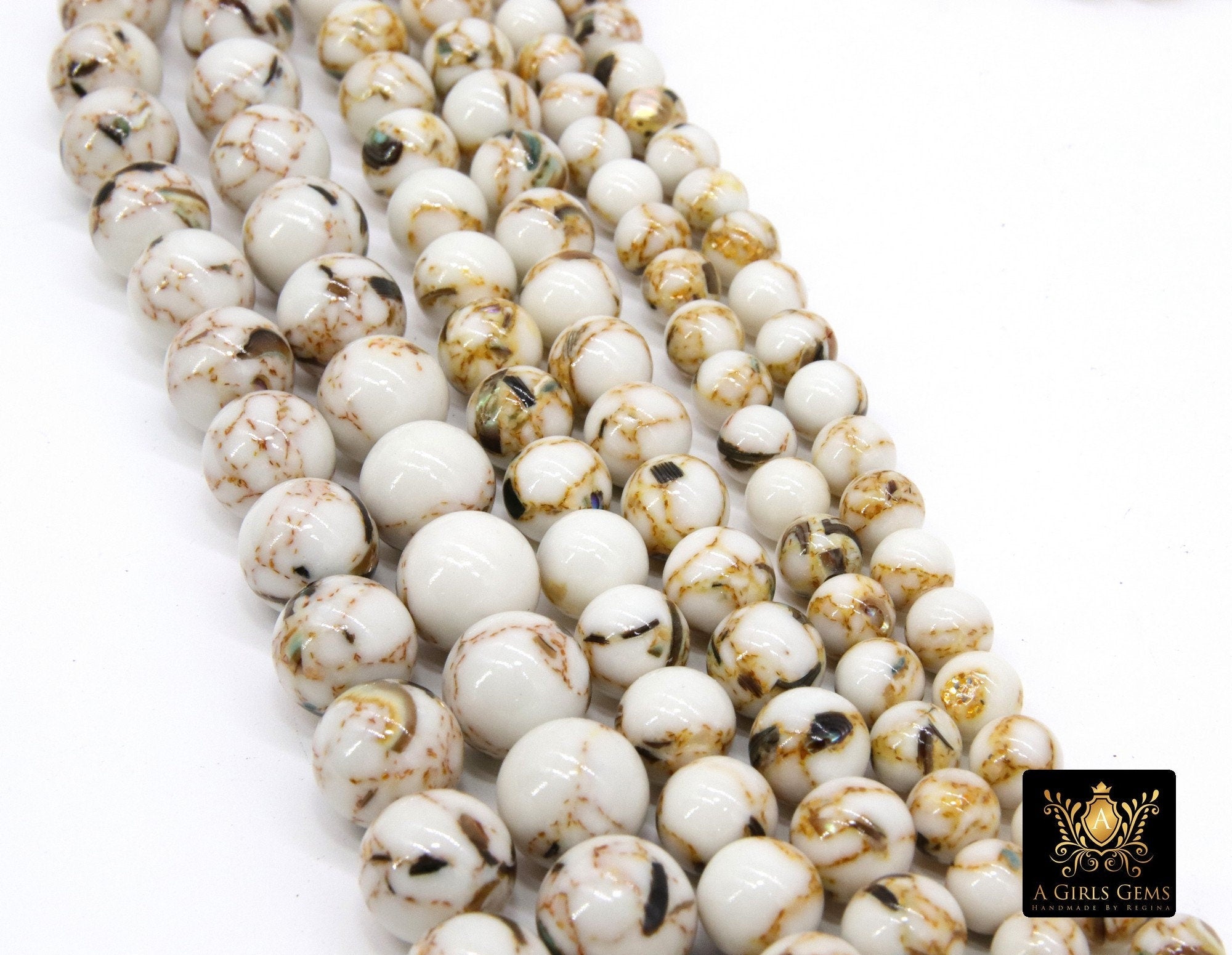 White Cream Turquoise Beads, Smooth Round Beige and White Marbleized Beads BS# 132, sizes in 6 mm 8 m 10 mm 15.75 inch Strands