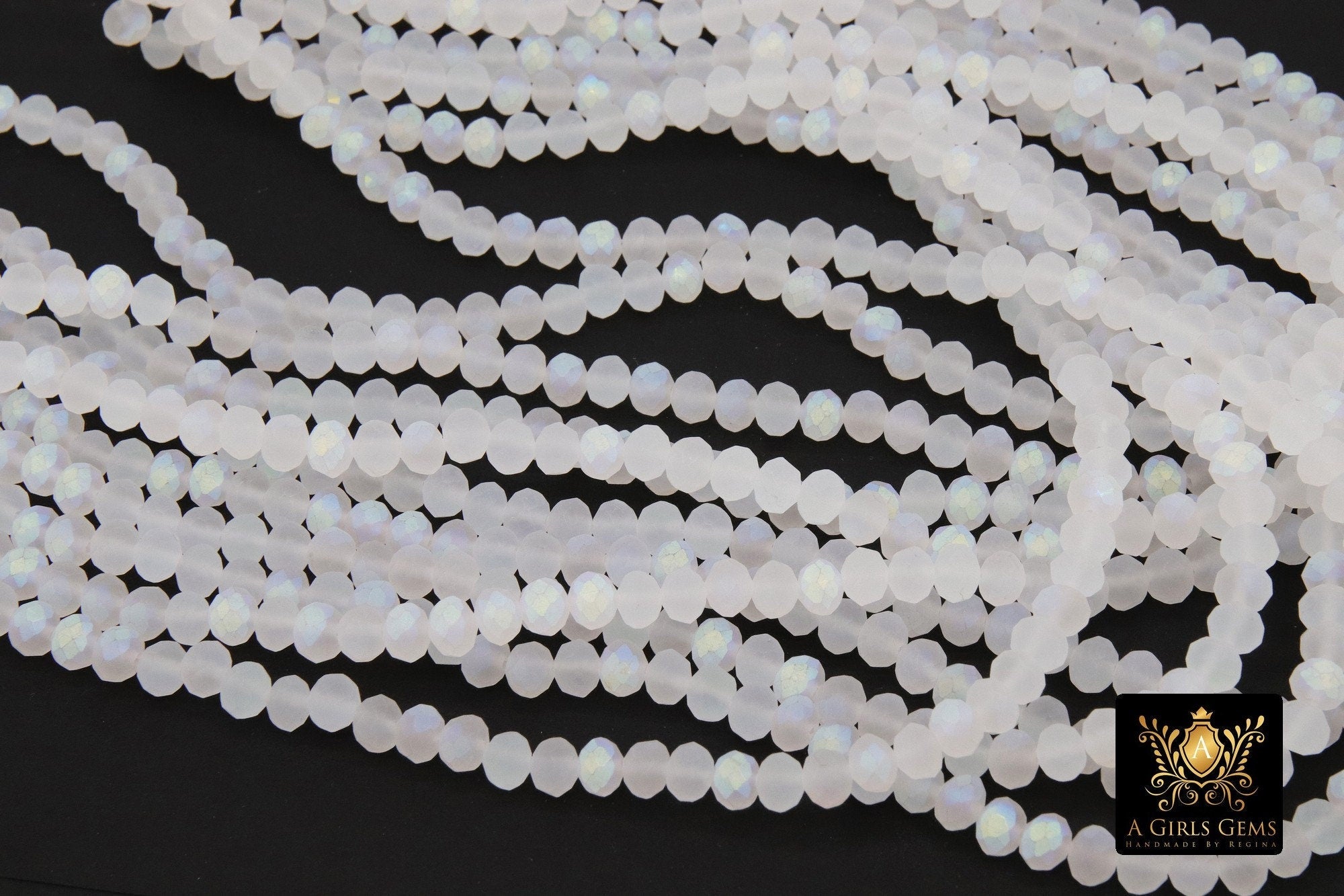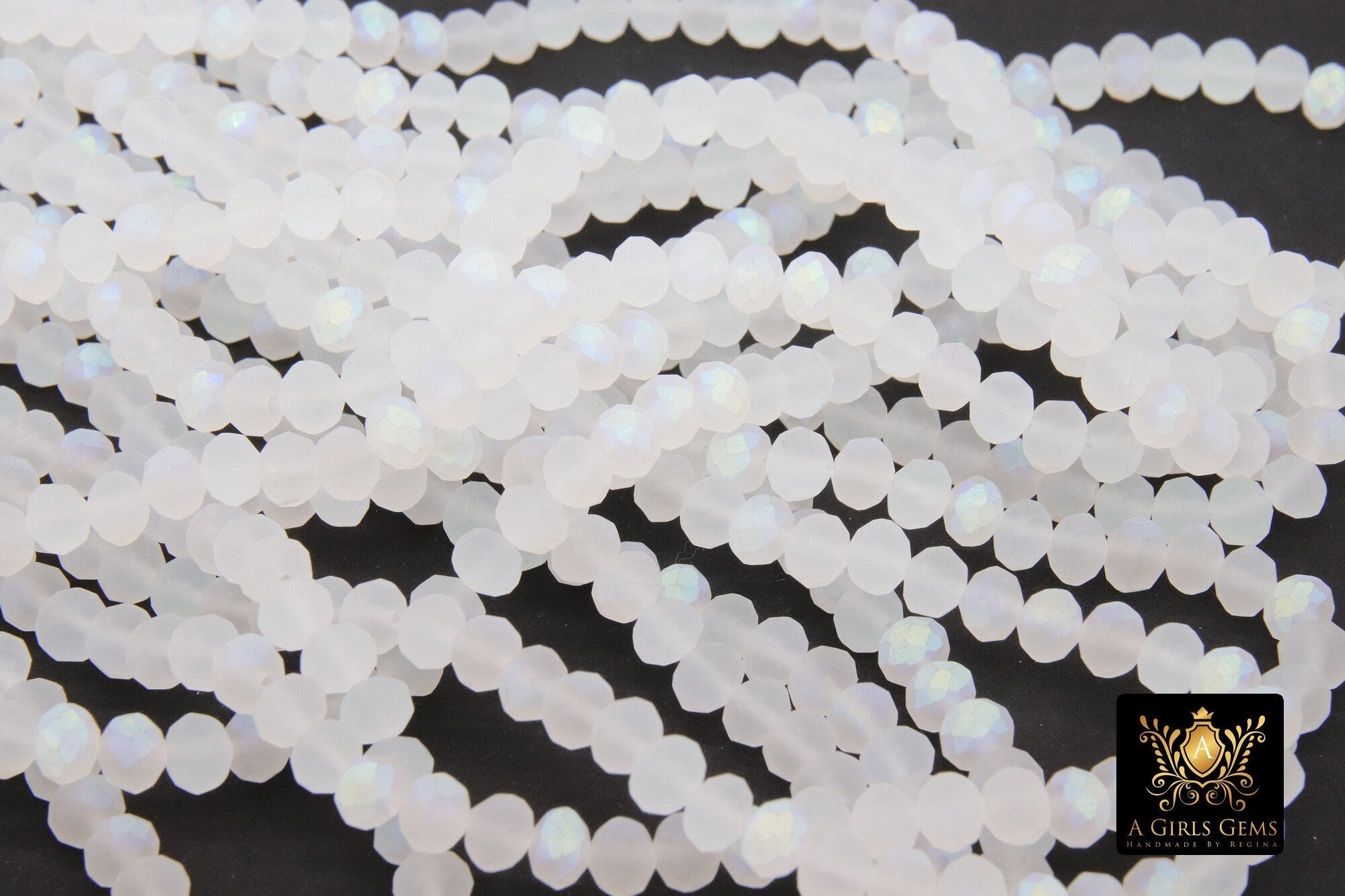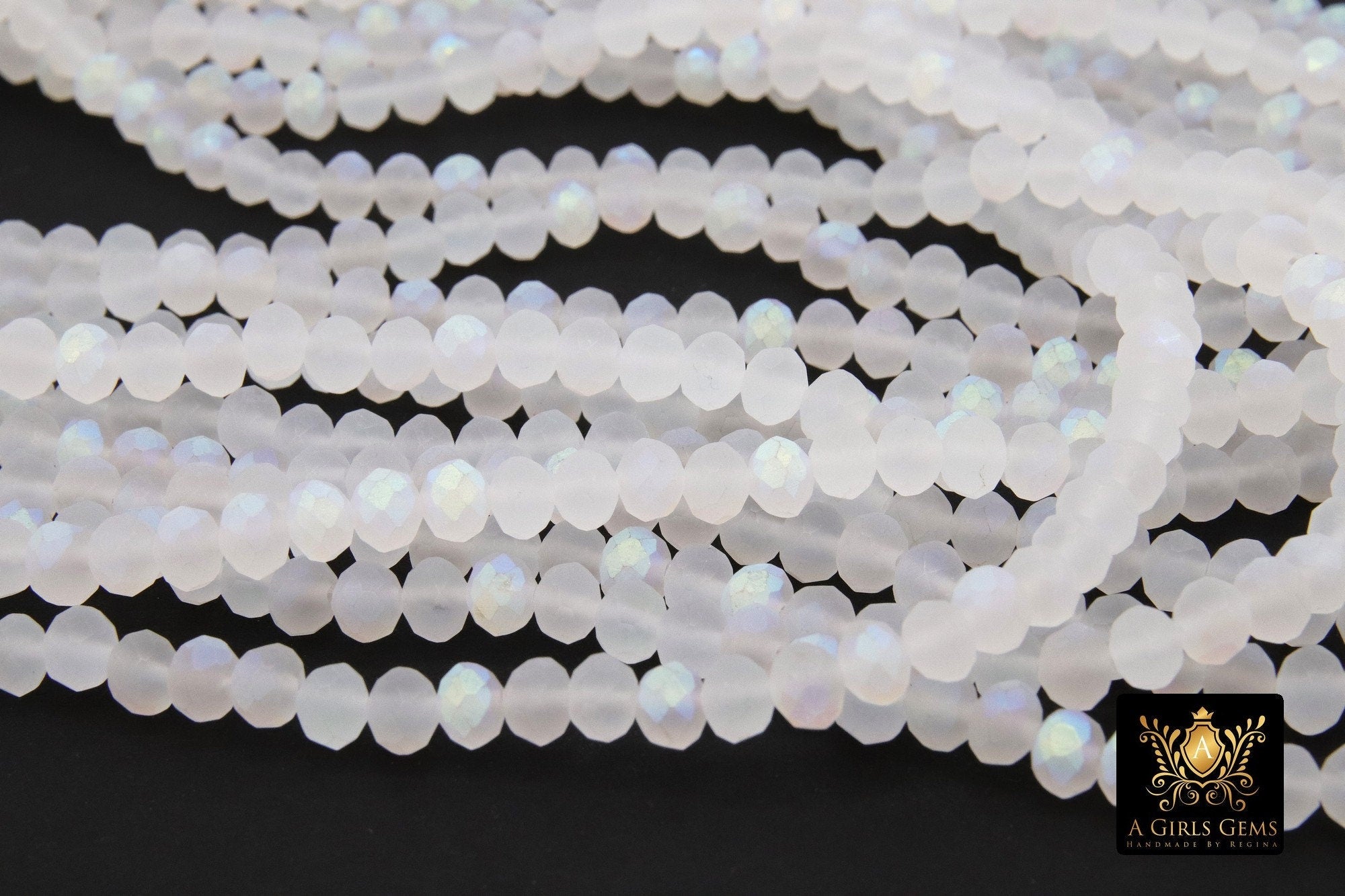 White Crystal Beads, 2 Strands Faceted Matte AB Crystal Rondelle Jewelry Beads BS #253, sizes 6 x 4 mm 15.75 inch Strands