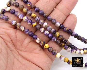 Purple and Gold Beads, Smooth Mixed Yellow Purple Jade Beads BS #95, LSU Jewelry Beads sizes 6 mm 16.5 inch Strands