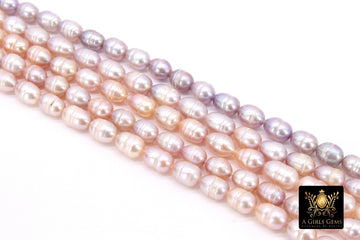 Genuine Pearl Bead Strands, 8 mm Beige Pink Baroque Pearl Beads BS #296, Oval Freshwater Rice Pearl