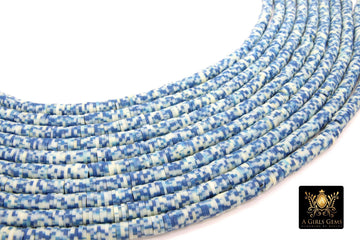 2 Strands 6 mm Clay Flat Beads, Slate Blue White Heishi beads in Polymer Clay Disc CB #117, Rondelle Multi Color
