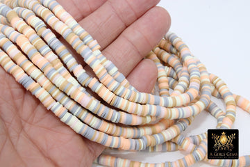 2 Strands 6 mm Clay Flat Beads, Pink Ivory Peach Gray Heishi beads in Polymer Clay Disc CB #133, Rondelle Multi Color