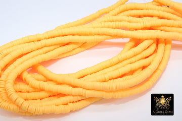 2 Strands 6 mm Clay Flat Beads, Yellow Heishi beads in Polymer Clay Disc CB #139, Light Orange Rondelle in 17.75 inch Strands