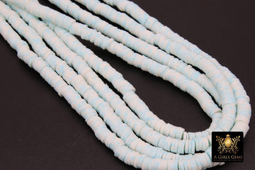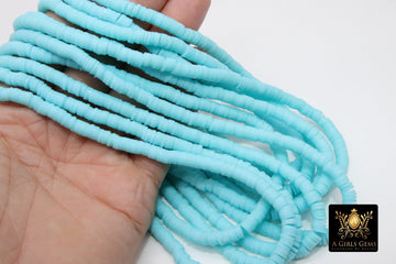 2 Strands 6 mm Clay Flat Beads, Sky Blue Heishi beads in Polymer Clay Disc CB #211, Light Blue Rondelle