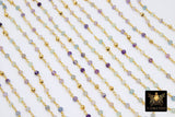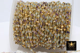 22 k Gold Natural Flourite Rosary Chain, Unfinished 4 mm Gold Pyrite Beaded Wire Wrapped RS #95, Mint Aqua Purple Diamond Cut Gemstones