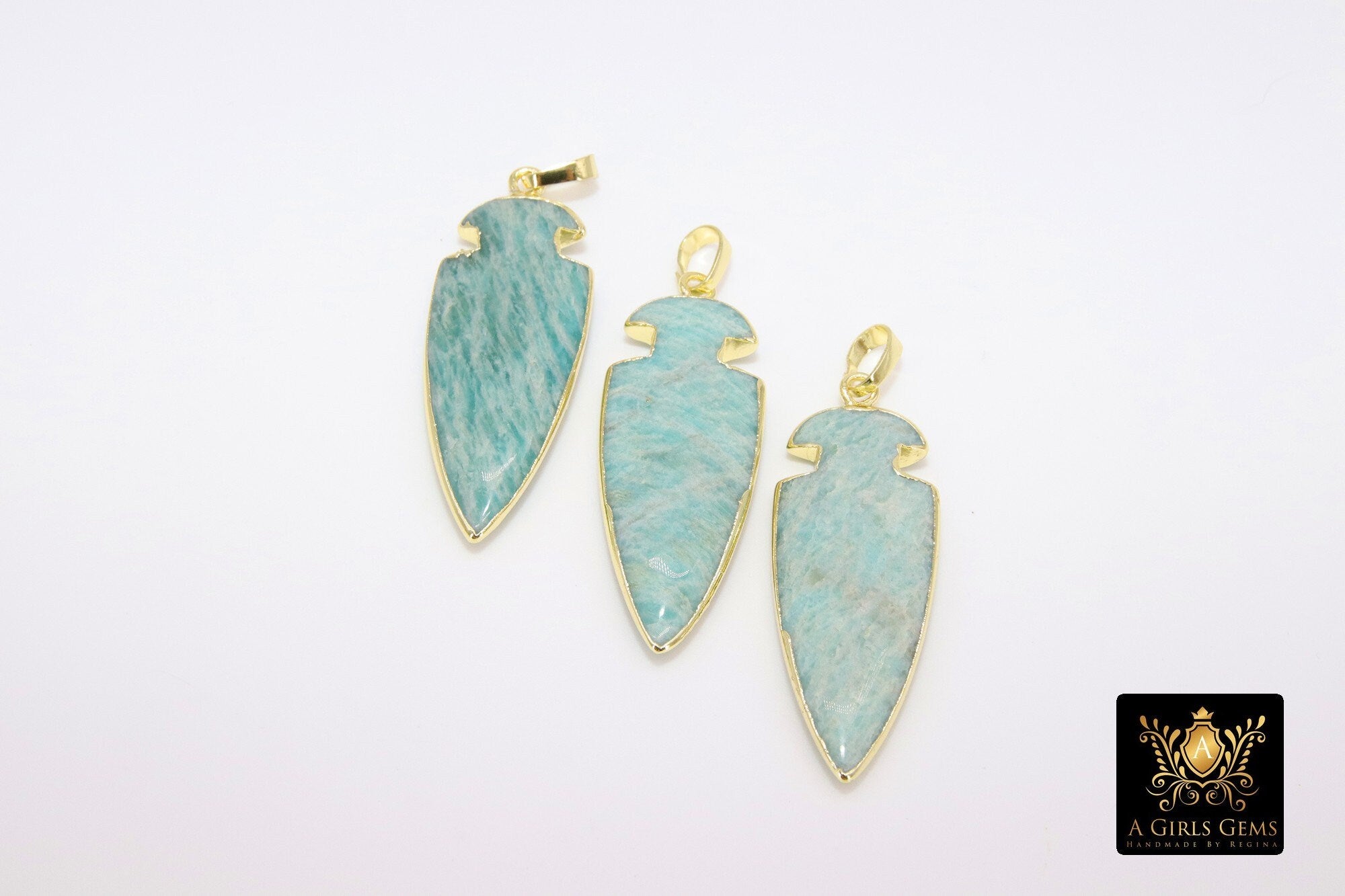 Measurements Approximately: Bar: 6.0 x 28 mm (OR) Arrowhead: 16 mm x 39 mm. All Amazonite may vary slightly in colors.