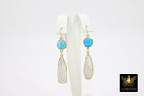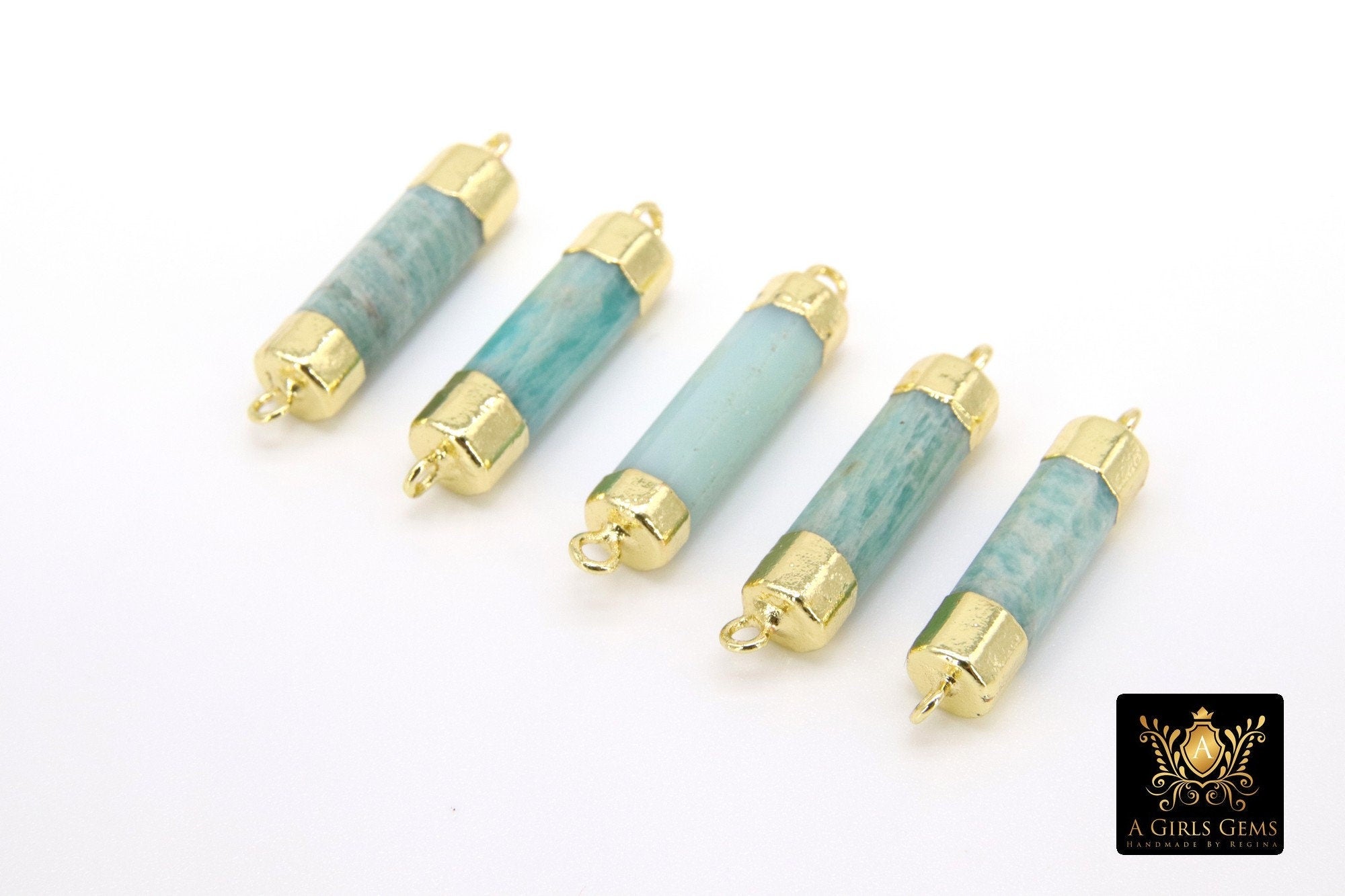 Amazonite Bar Connector, Genuine Gemstone Gold Bar Links #759, Aqua Blue Stone Pendants