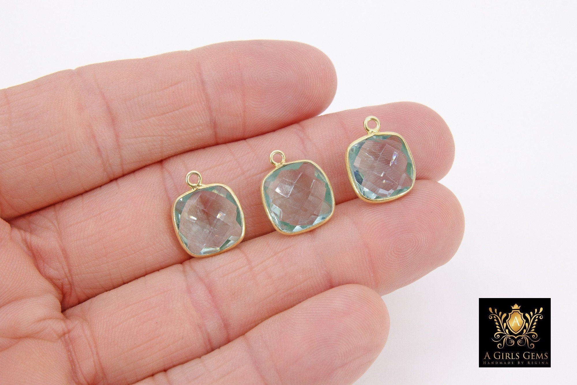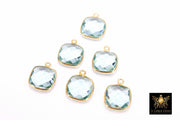 Blue Topaz Square Charms, 12 mm Gold Gemstone Charms #2993, Sterling Silver