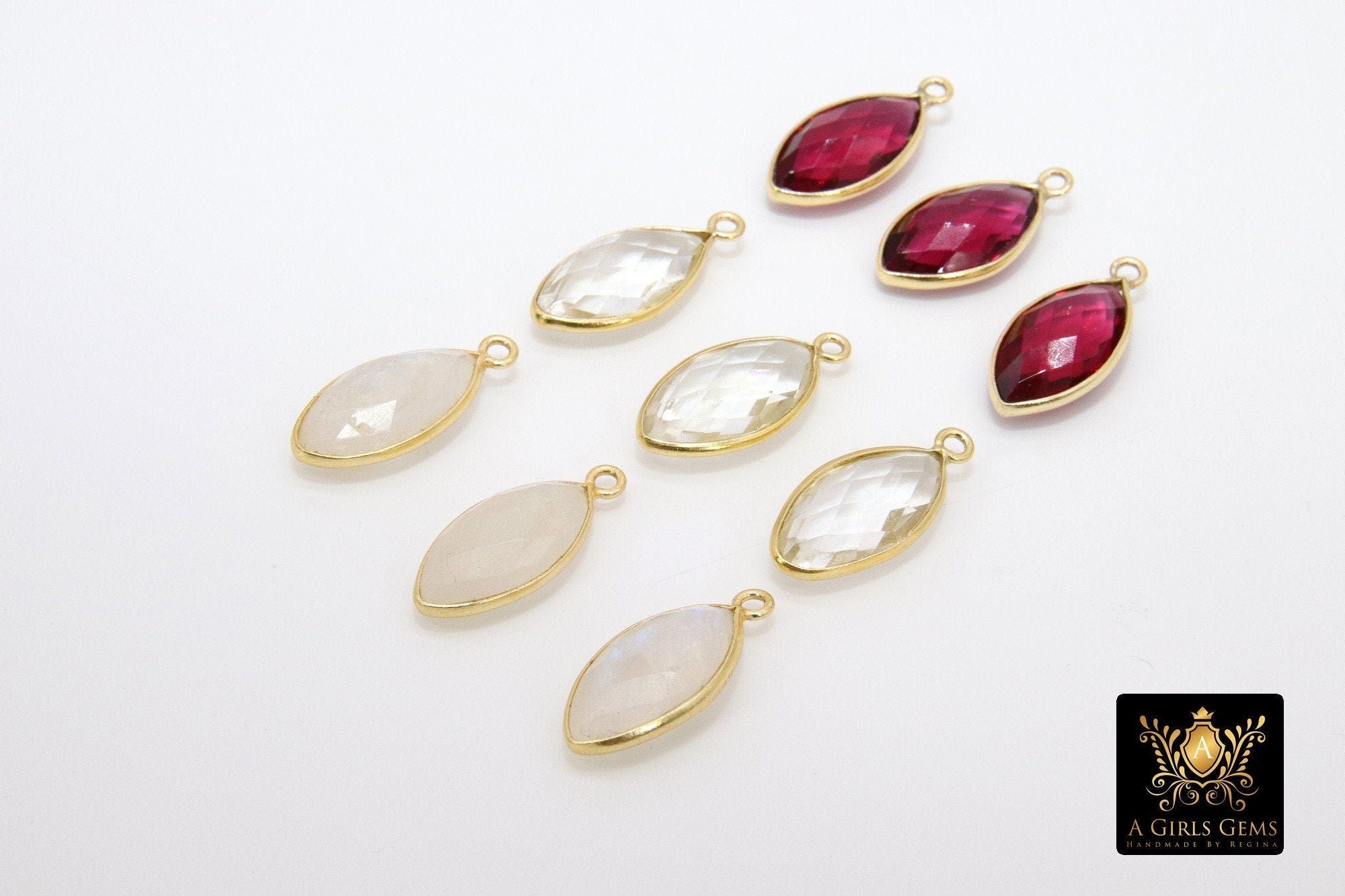 Clear Quartz Gold Charms, Moonstone Oval Marquis Leaf Shape Charms #2456, Pink Tourmaline Gold 925 Silver Gemstone Charms
