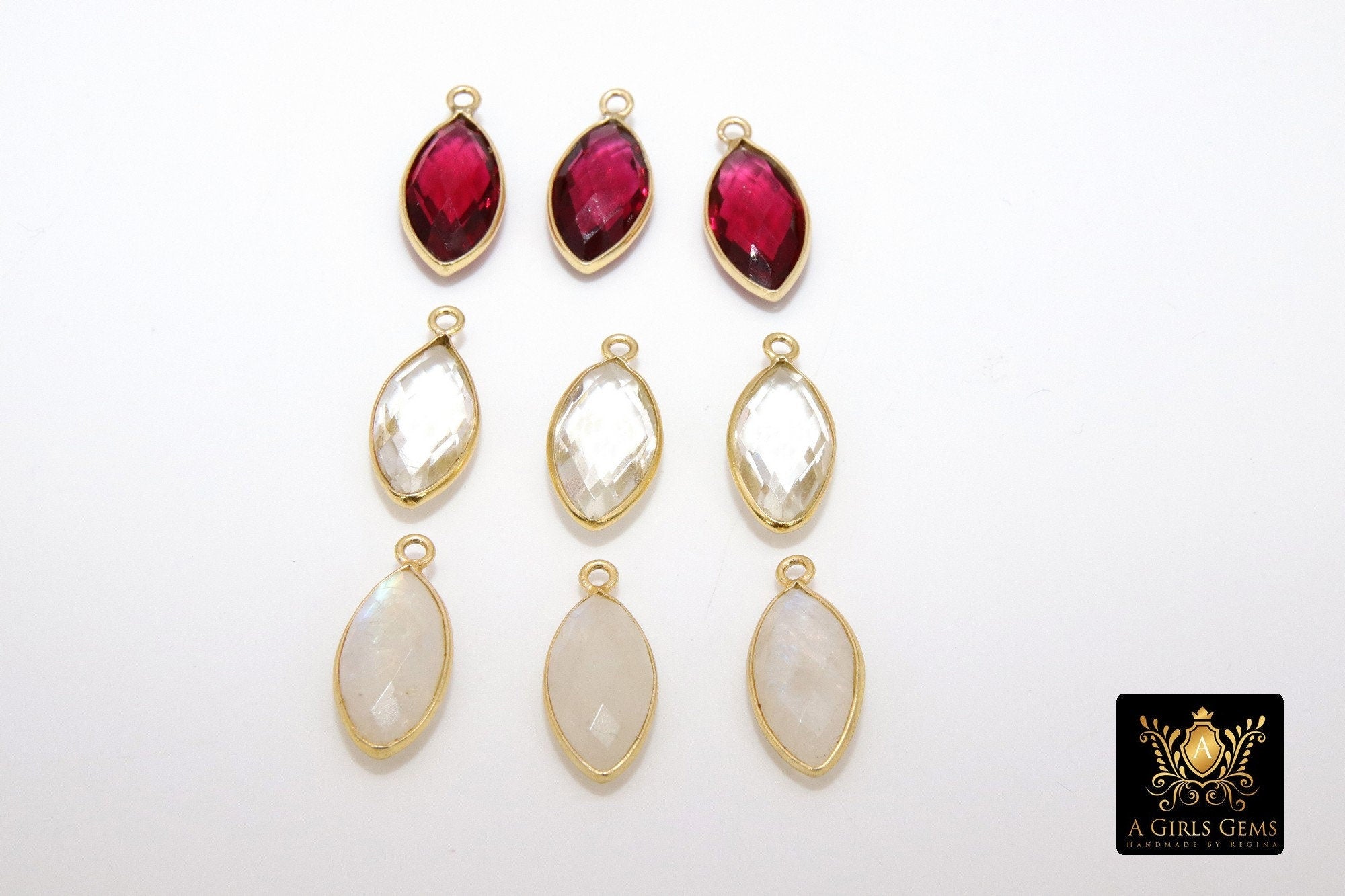 Clear Quartz Gold Charms, Moonstone Oval Marquis Leaf Shape Charms, Pink Tourmaline Gold 925 Silver Gemstone Charms, Perfect for Necklaces, Bracelets, or Earrings