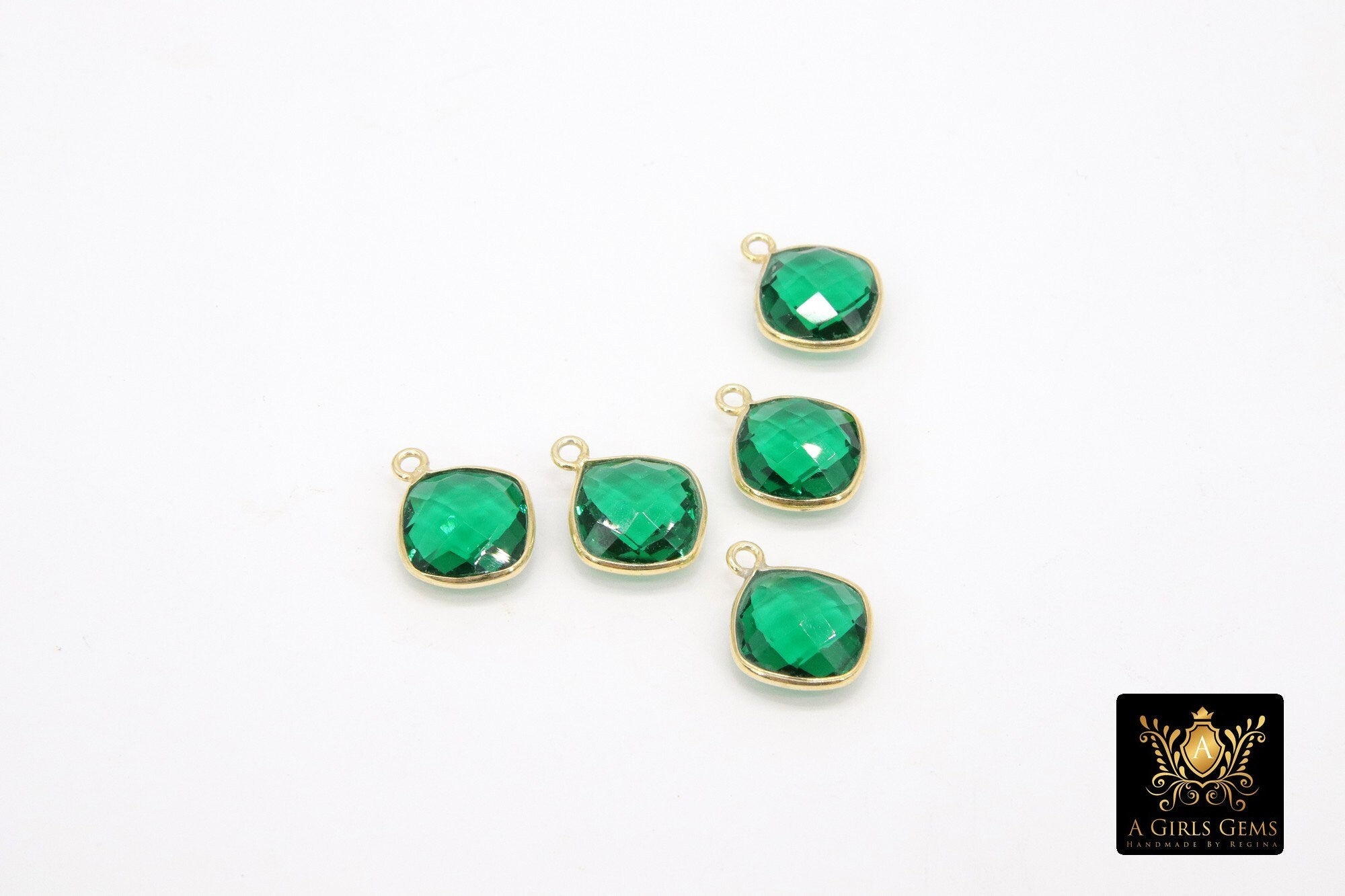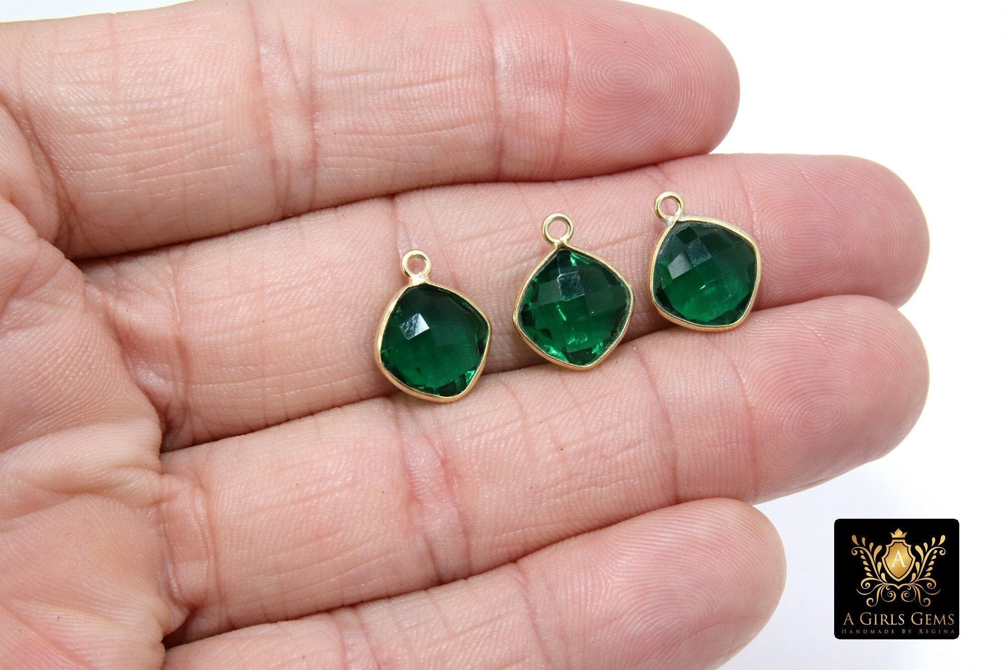 Diamond Emerald Shaped Charms, Gold over 925 Sterling Silver Green Gemstone Charms #2462, May Birthstone Jewelry