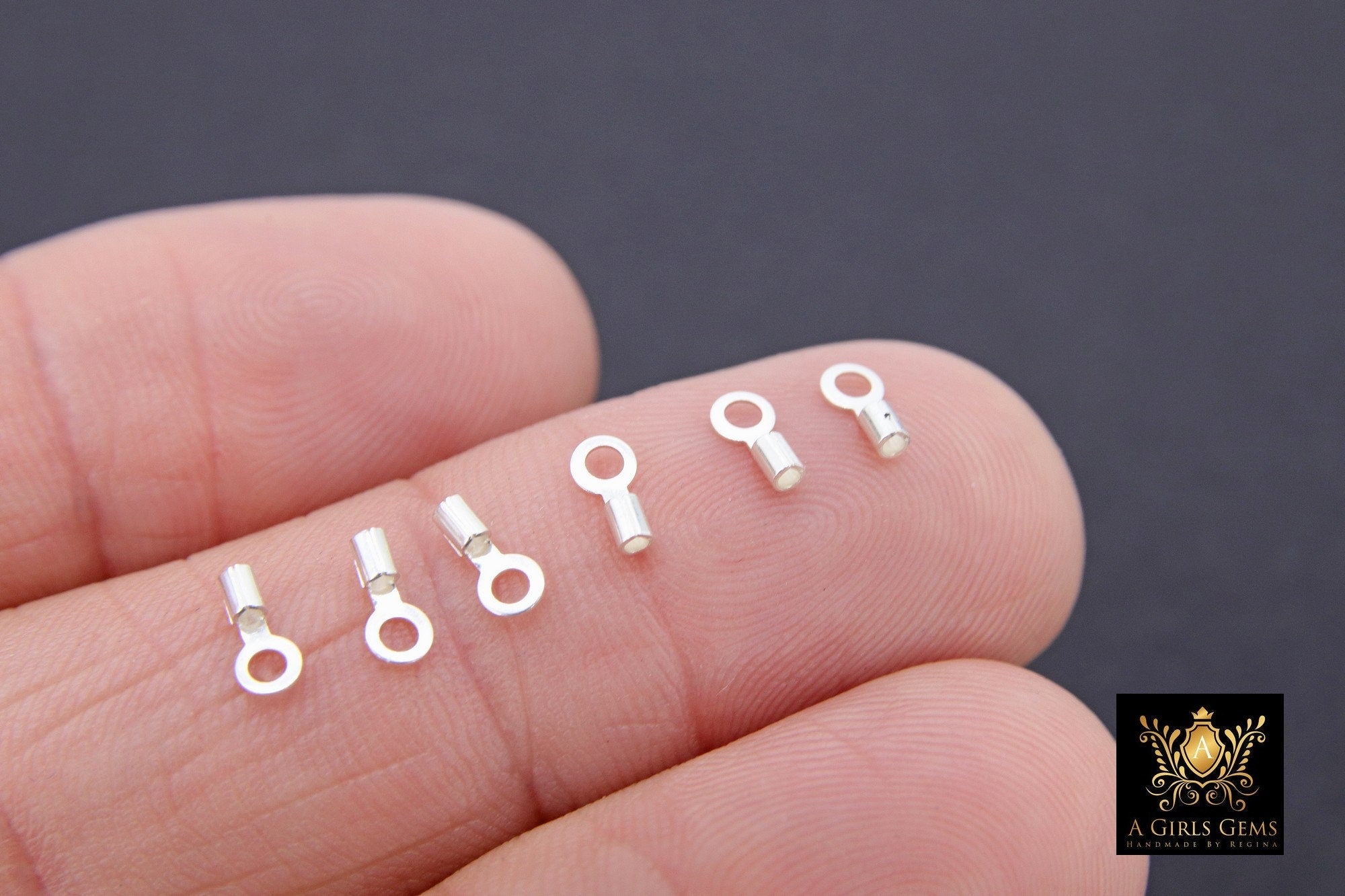 925 Sterling Silver Crimp End Caps, Silver Dainty Chain Necklace Crimps # 823, 3.0 mm Ring and 1.0 mm ID Hole