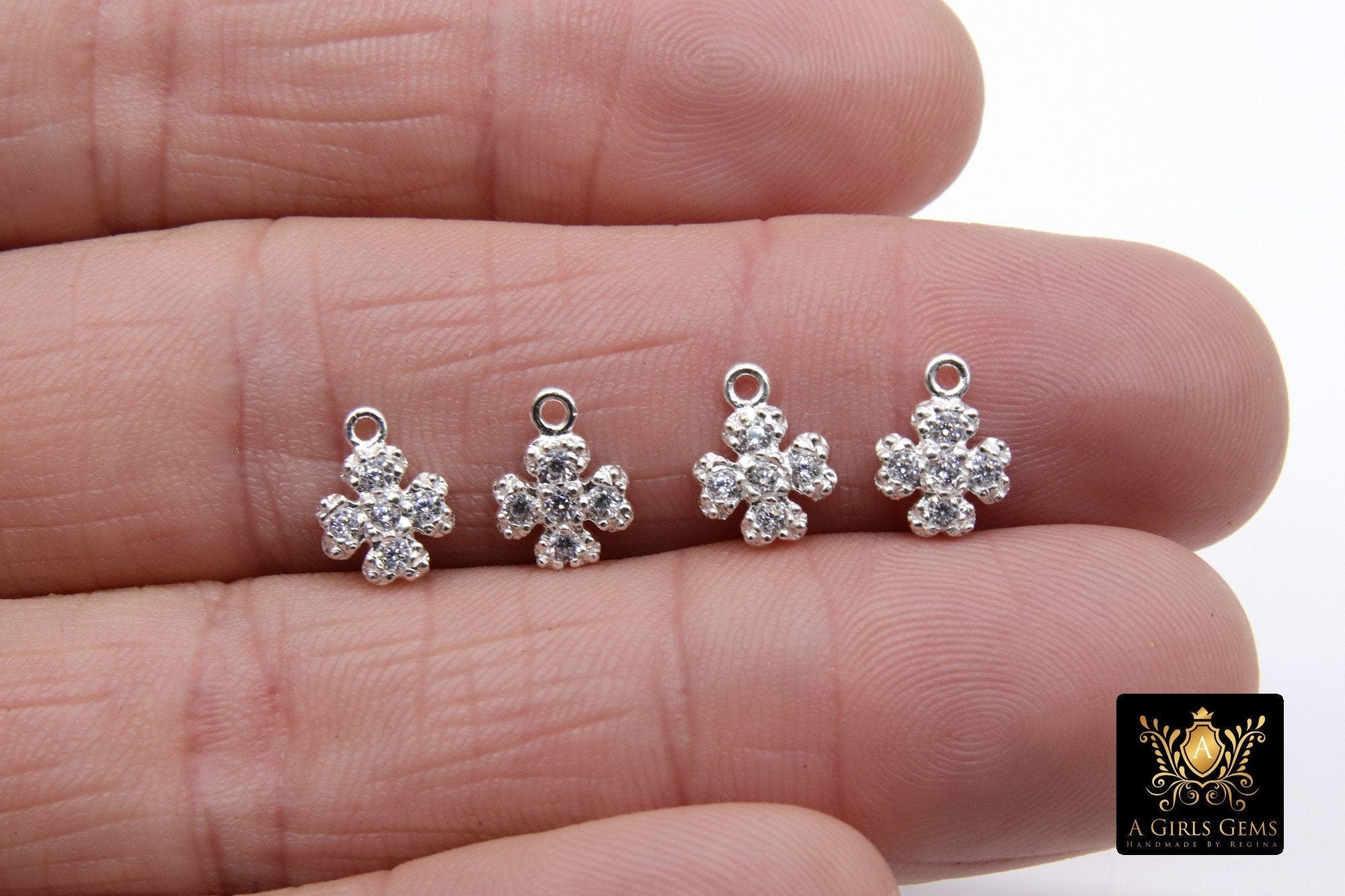 CZ Silver Maltese Cross Charms, 10 mm Silver 925 Sterling Clover # 752, Cross Jewelry