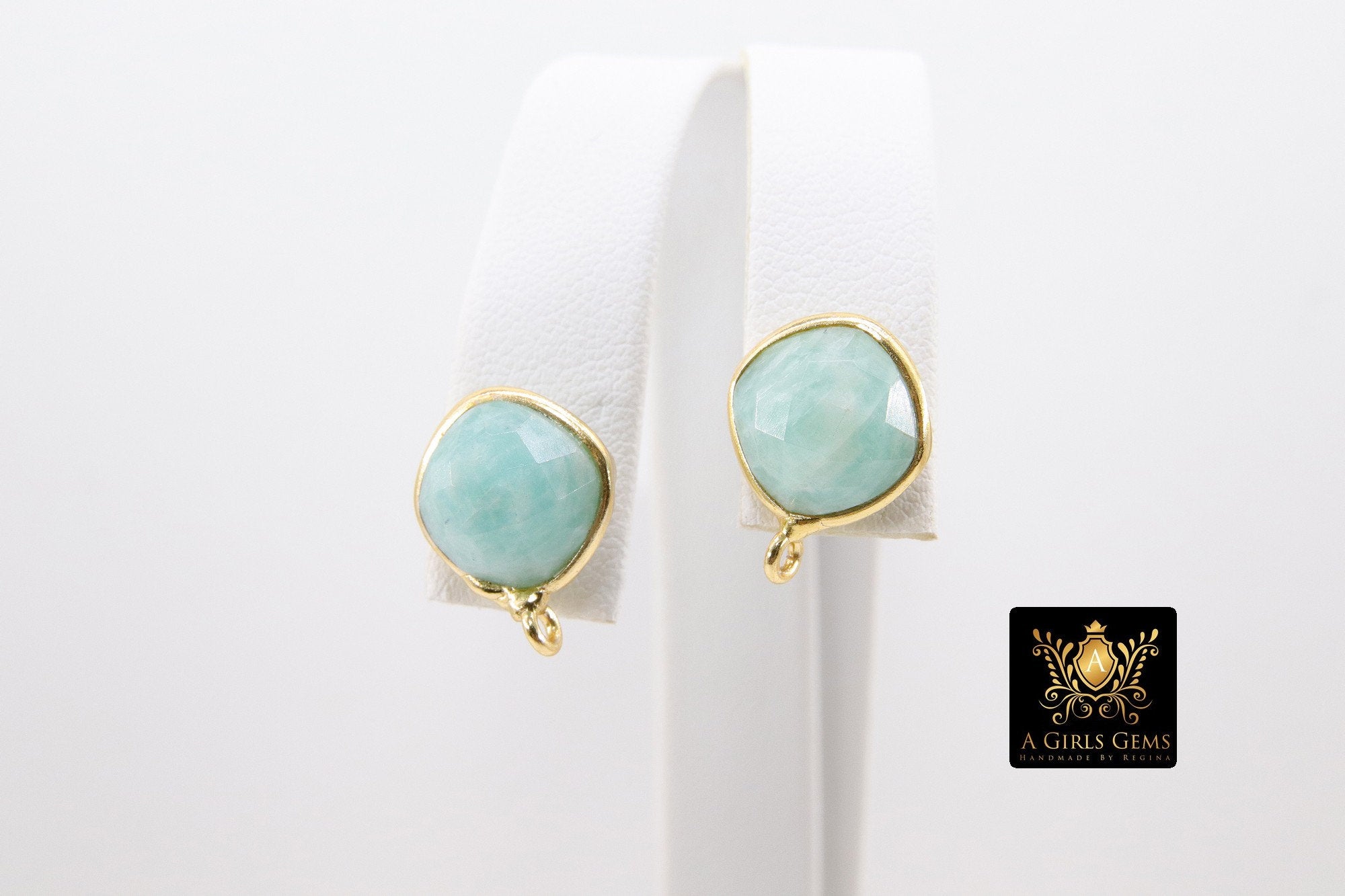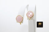 Gold Plated 925 Sterling Silver Stud Earrings with Loops, Rose Quartz Diamond or Round Gemstone with Open Loops- 2 pc/1 Pair