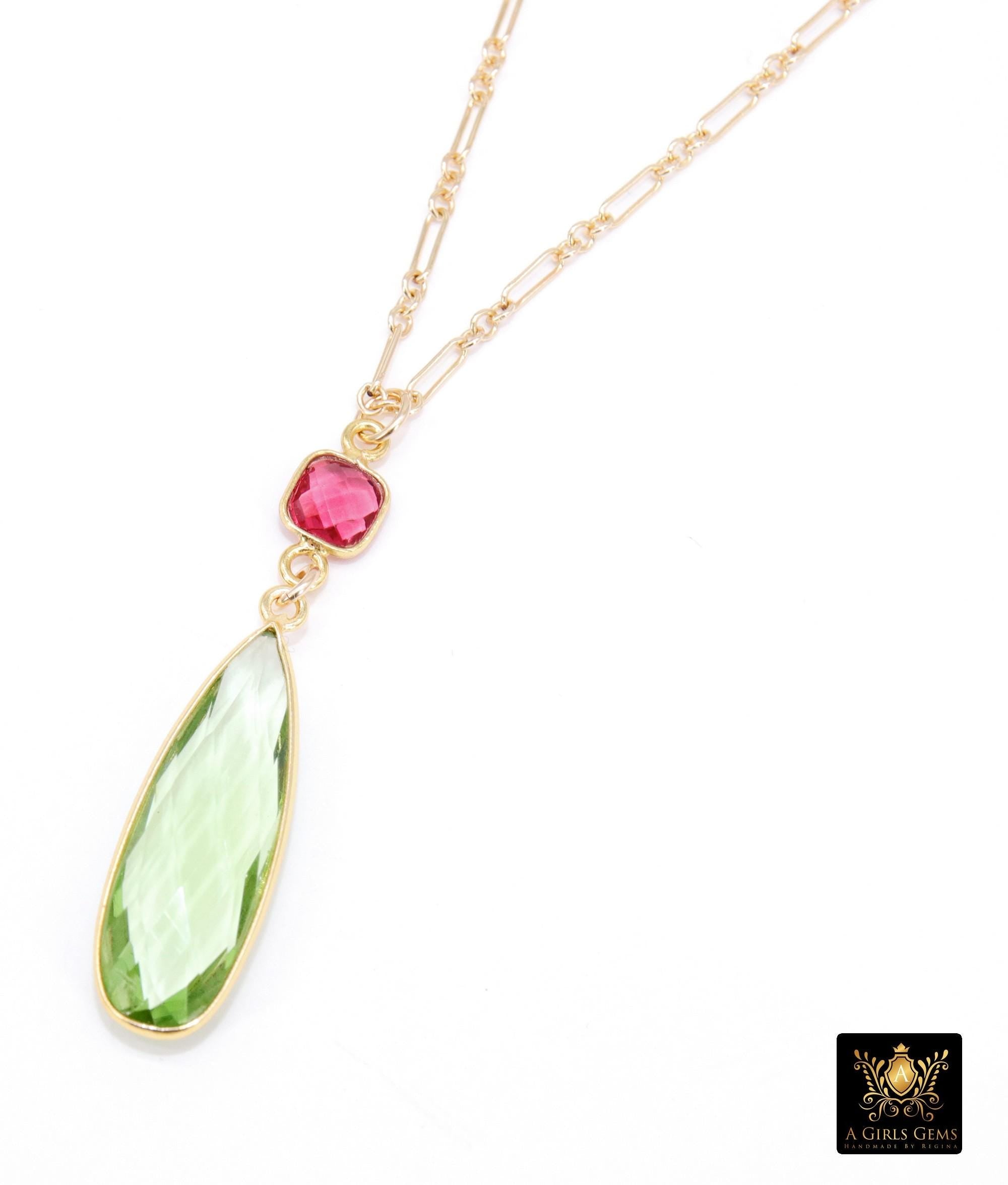 These lovely earrings are so pretty with Green Amethyst and Pink Tourmaline. Pick your ear wire hook style below. Message us if you would like to customize your earrings in any different gemstone colors. 14 K Gold Filled Necklace is sold separately.