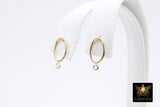 14 K Gold Hoop Stud Earrings, High Quality Gold Filled Oval Ring Stud Post Findings #2841, 1 Loop Egg Shaped Minimalist Hoops