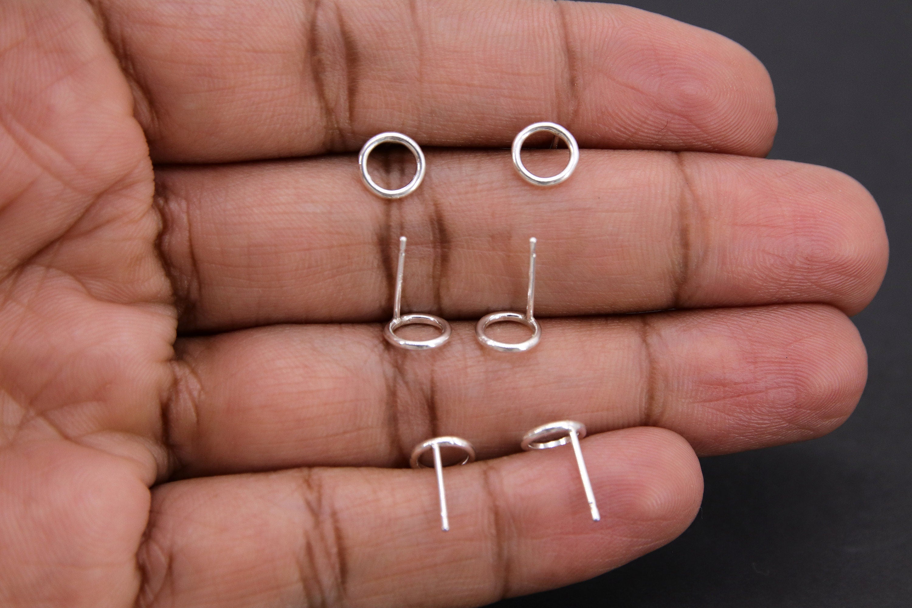 925 Sterling Silver Open Circle Stud Earrings, AG# 853, 7mm Ear Posts With Backs