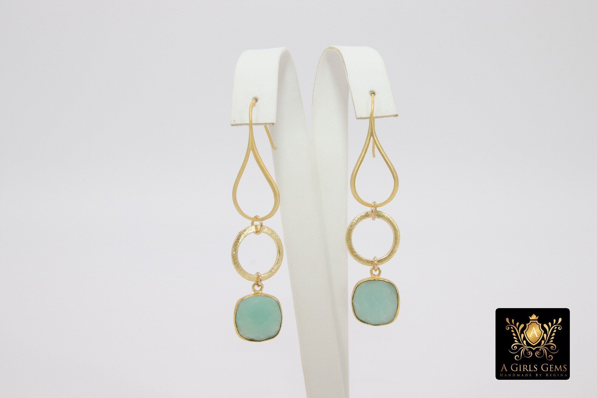 These earrings have Amazonite gemstones. Can be made with other gemstone colors; message us if you would like to customize your earrings.