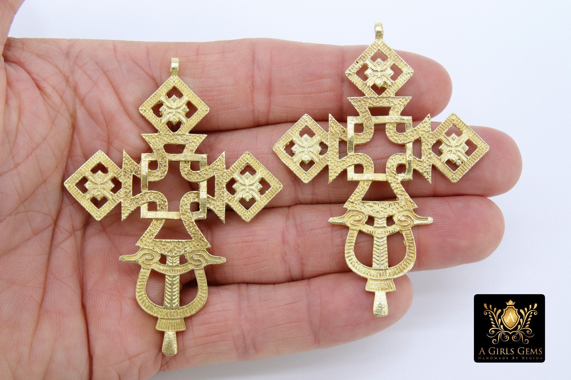 Brass Ethiopian Coptic Cross Jewelry Pendant African Cross Gold Charm Pendants Jewelry Making Supplies