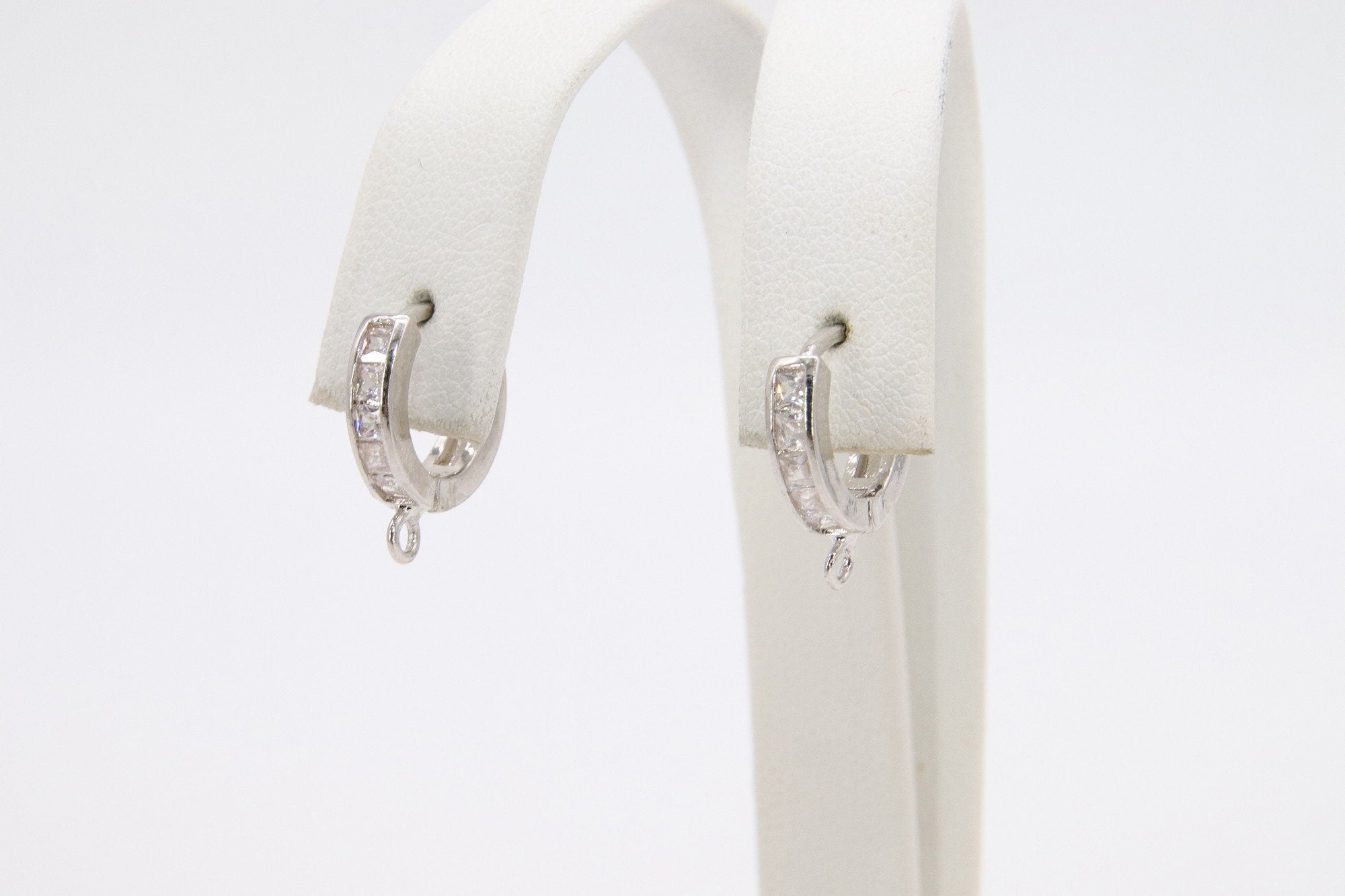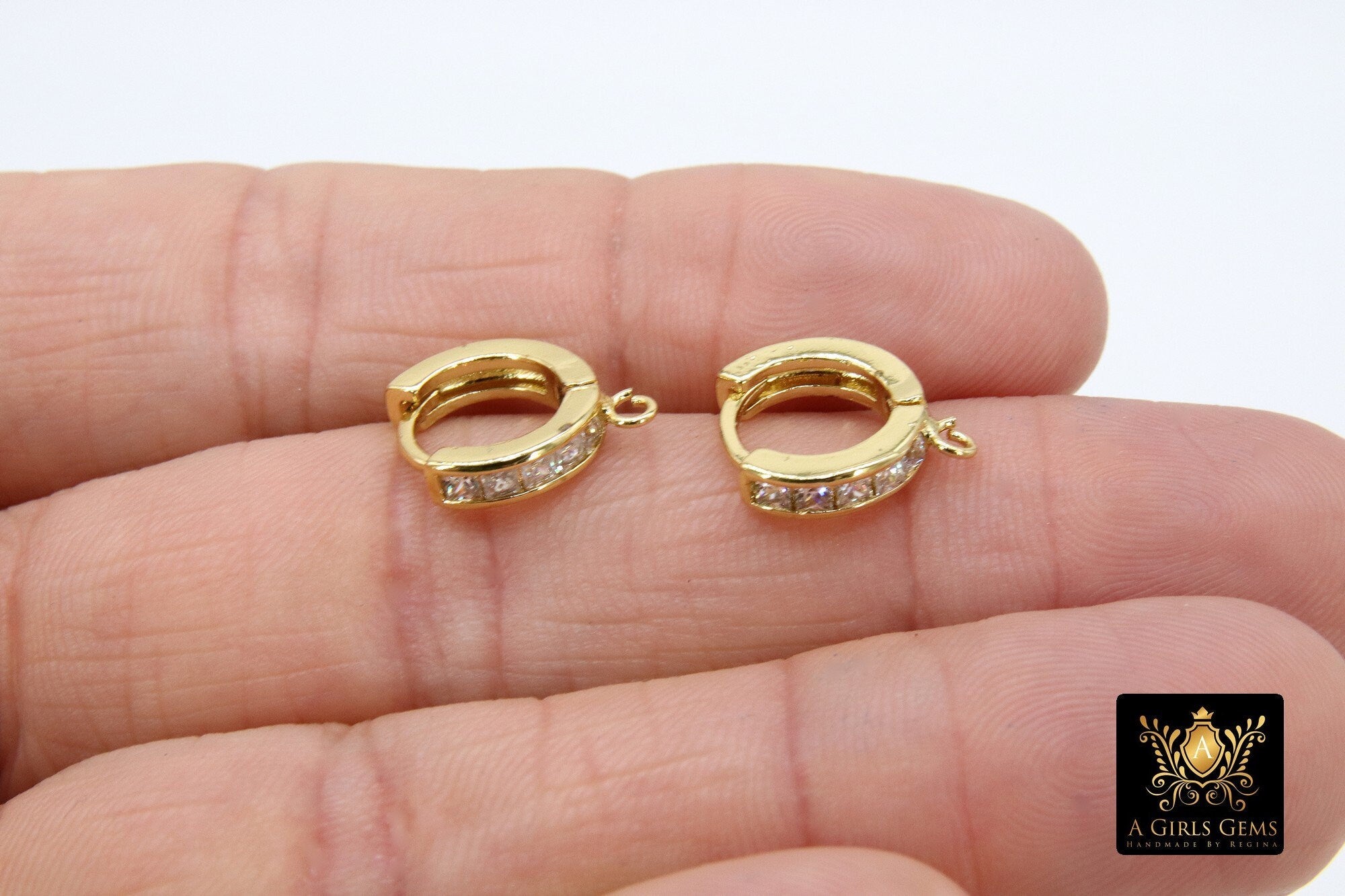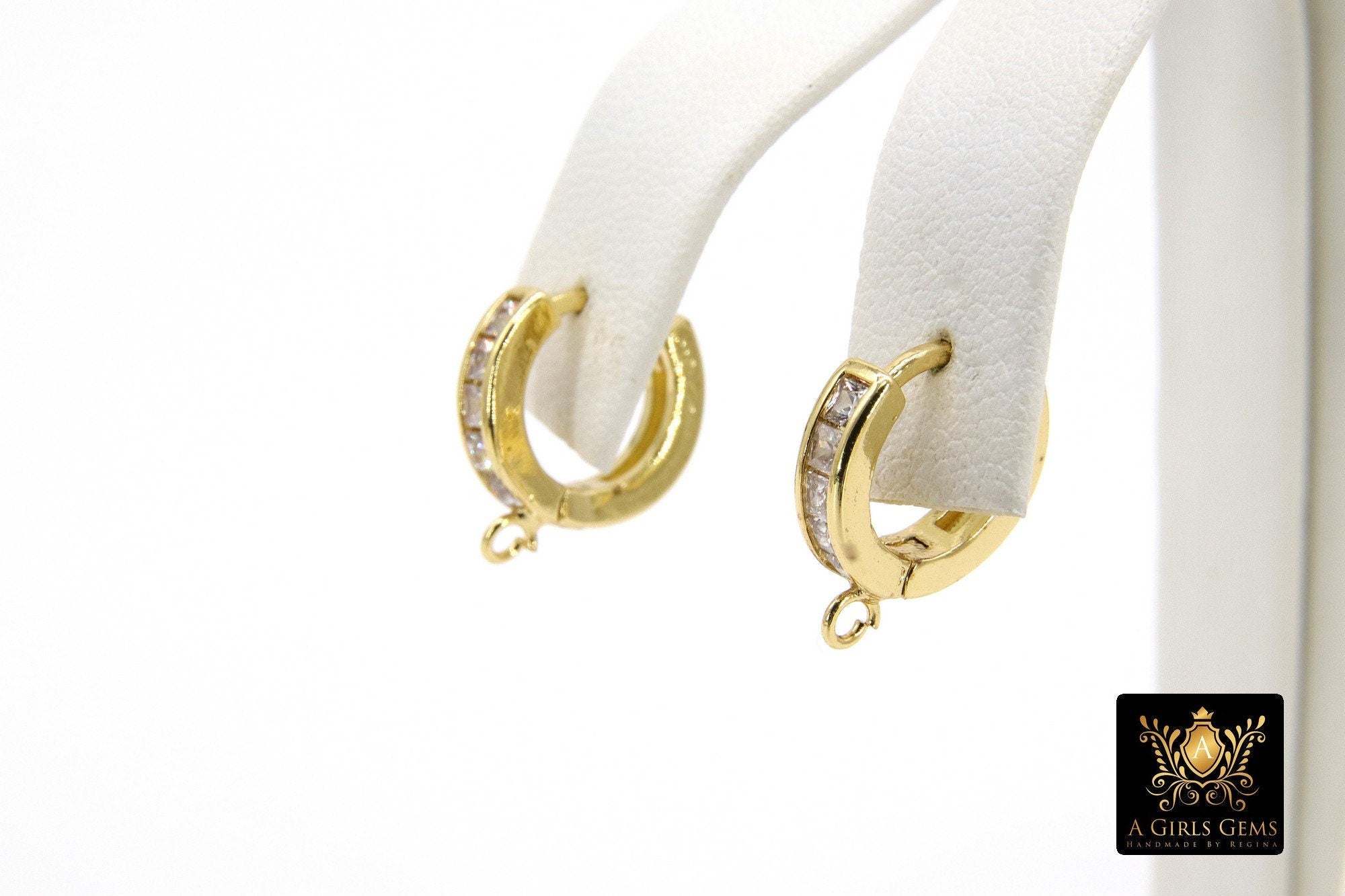 CZ Micro Pave Silver Huggies, Thick 3.5 mm Lever back Gold Round Ear Ring Parts #732, 14 mm Hoops with Closed / Open Loops