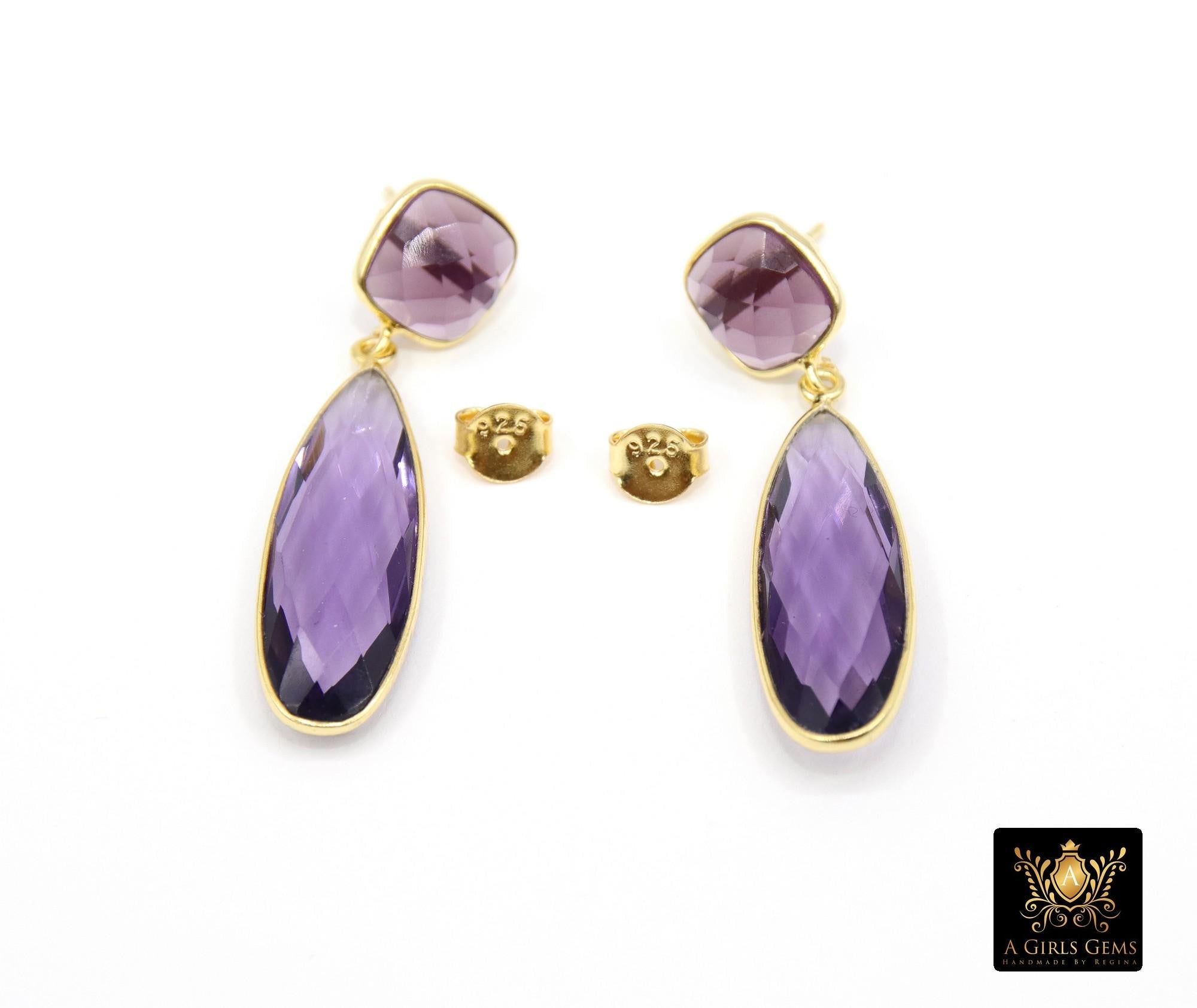 Purple Amethyst Stud Earrings, Gold Over 925 Silver Teardrop Gemstone, LSU Jewelry
