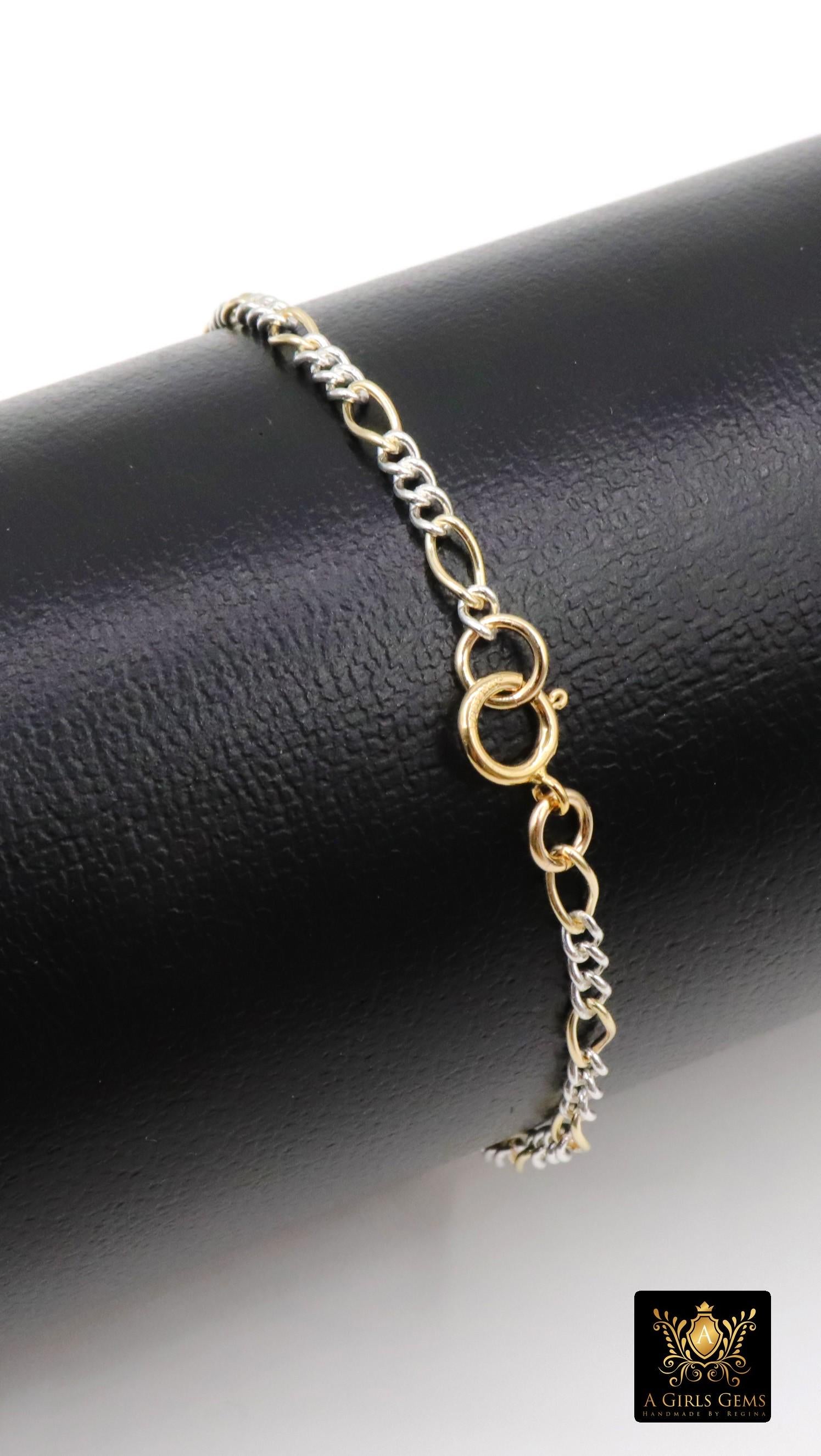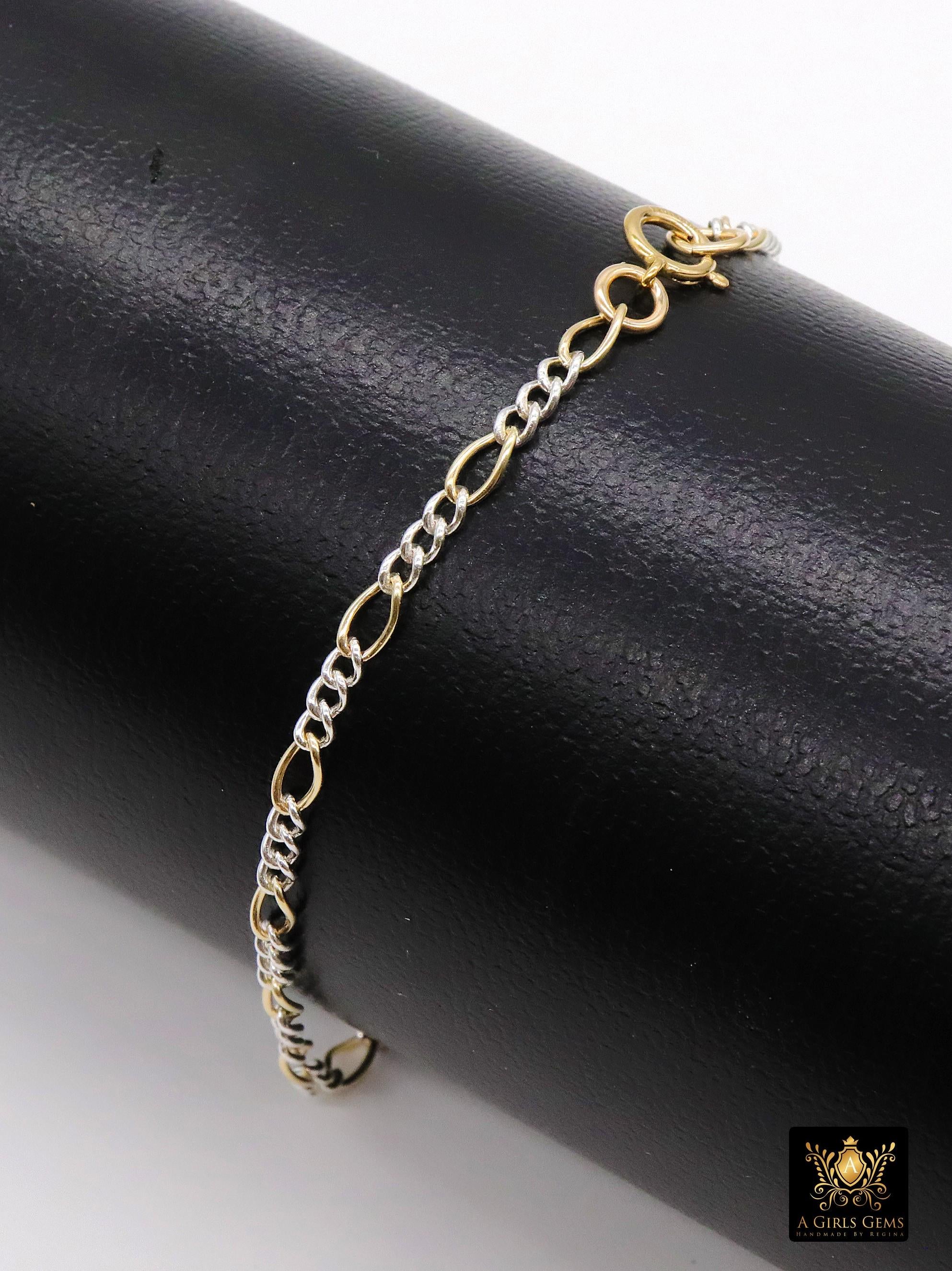 Mixed Metal 14 K Gold Filled Figaro Chain Bracelet OR Necklace, 925 Sterling Silver Long Short Rolo Links, Gifts For Her
