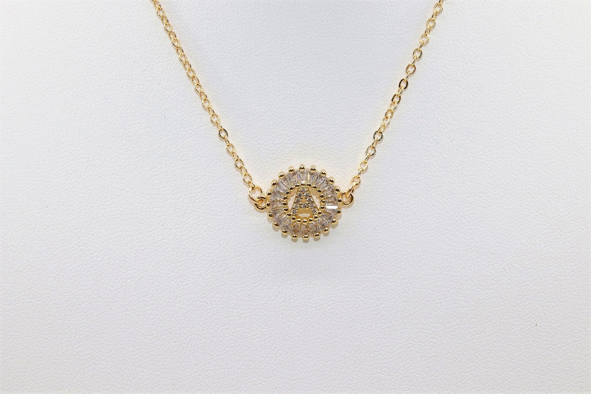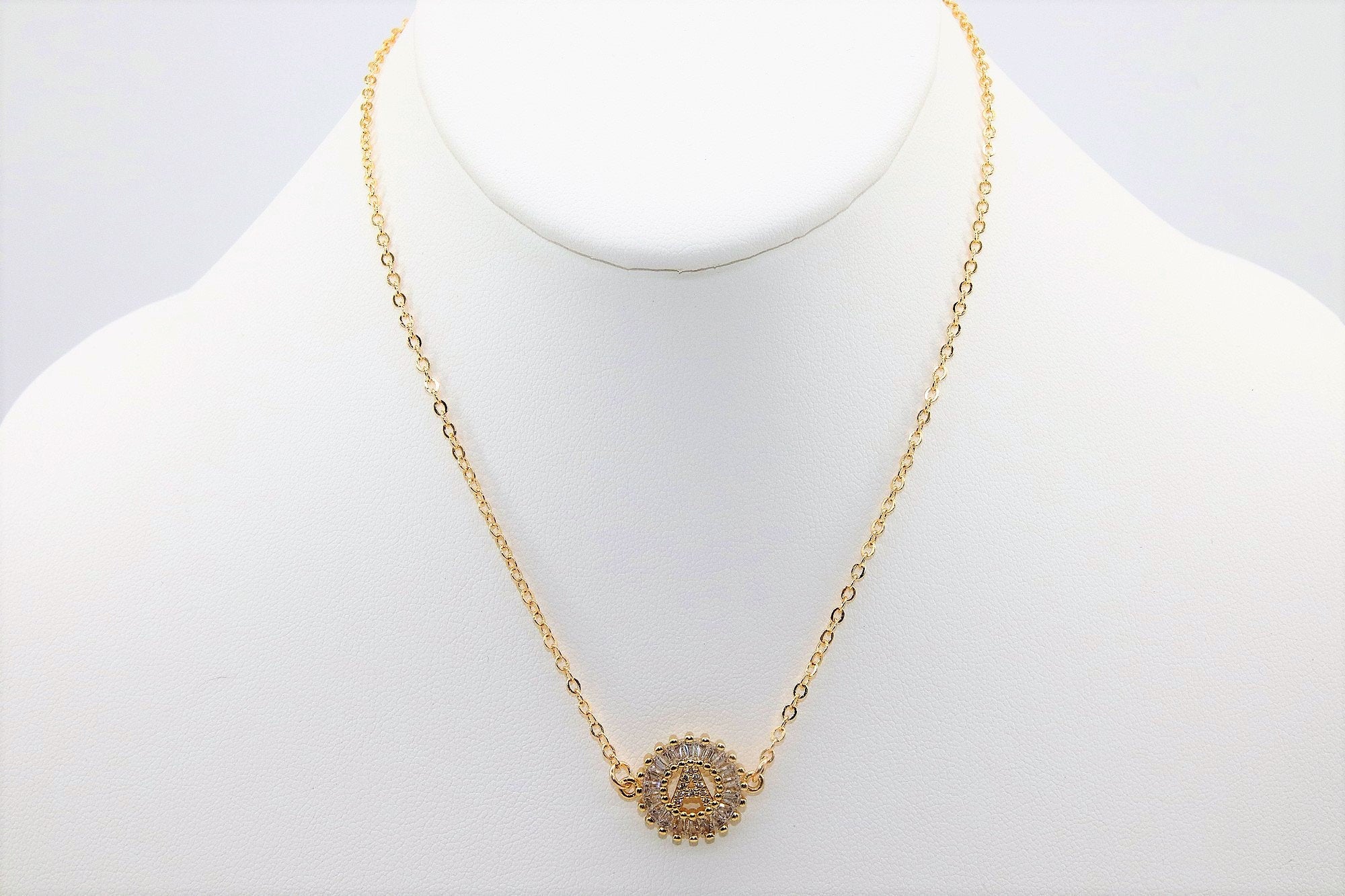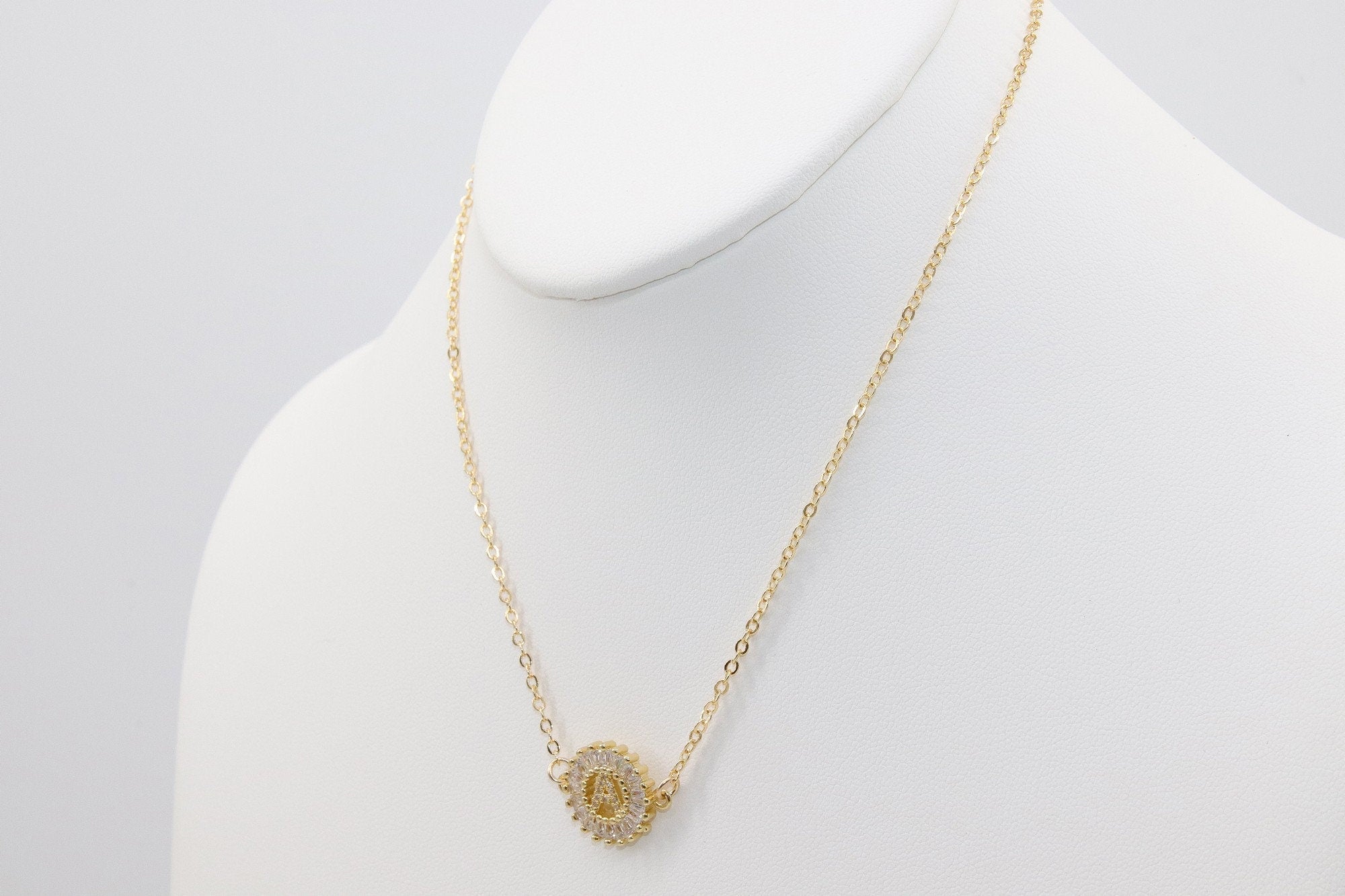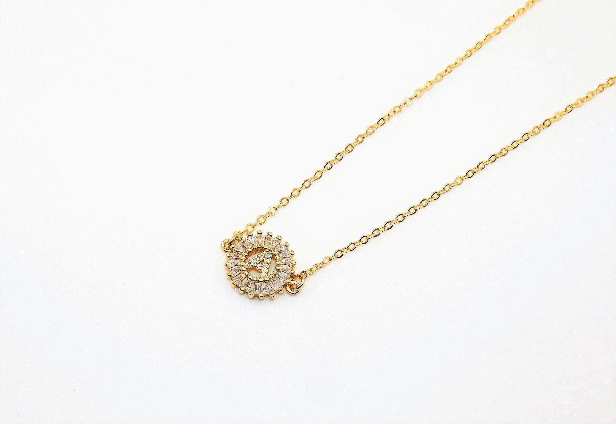 14 K Gold Initial Chain Necklace, Cubic Zirconia Baguette Round Disc Letters in Choker or Bolo Bracelet, Personalized Alphabet