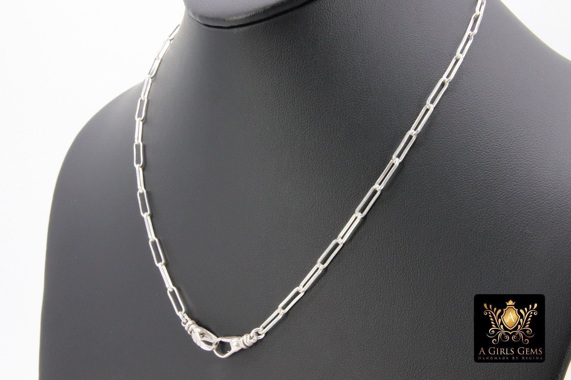 925 Sterling Silver Double Fob Necklace, Fob Swivel Charm Chain #939, Silver Drawn Paperclip Chain