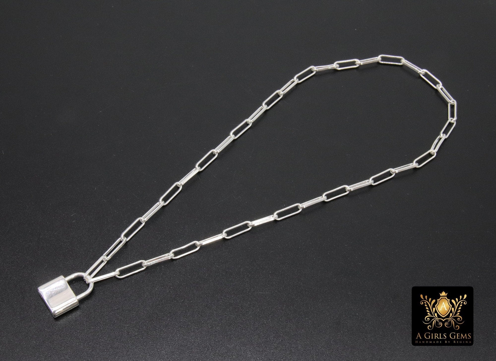 925 Sterling Silver Lock Necklace, Solid Silver Locking Clasp Elegant Submissive Discreet Day Collar, BDSM Jewelry