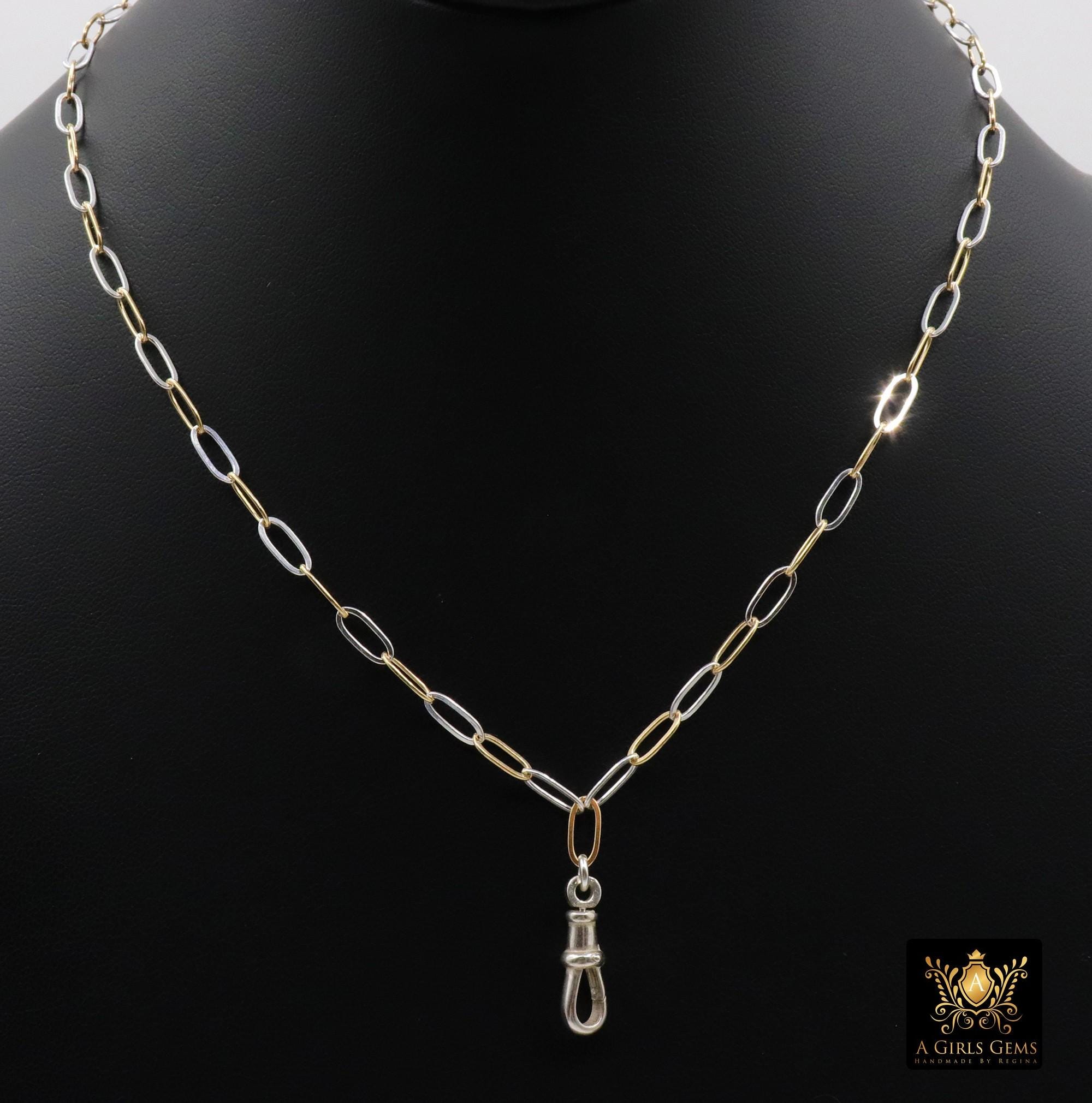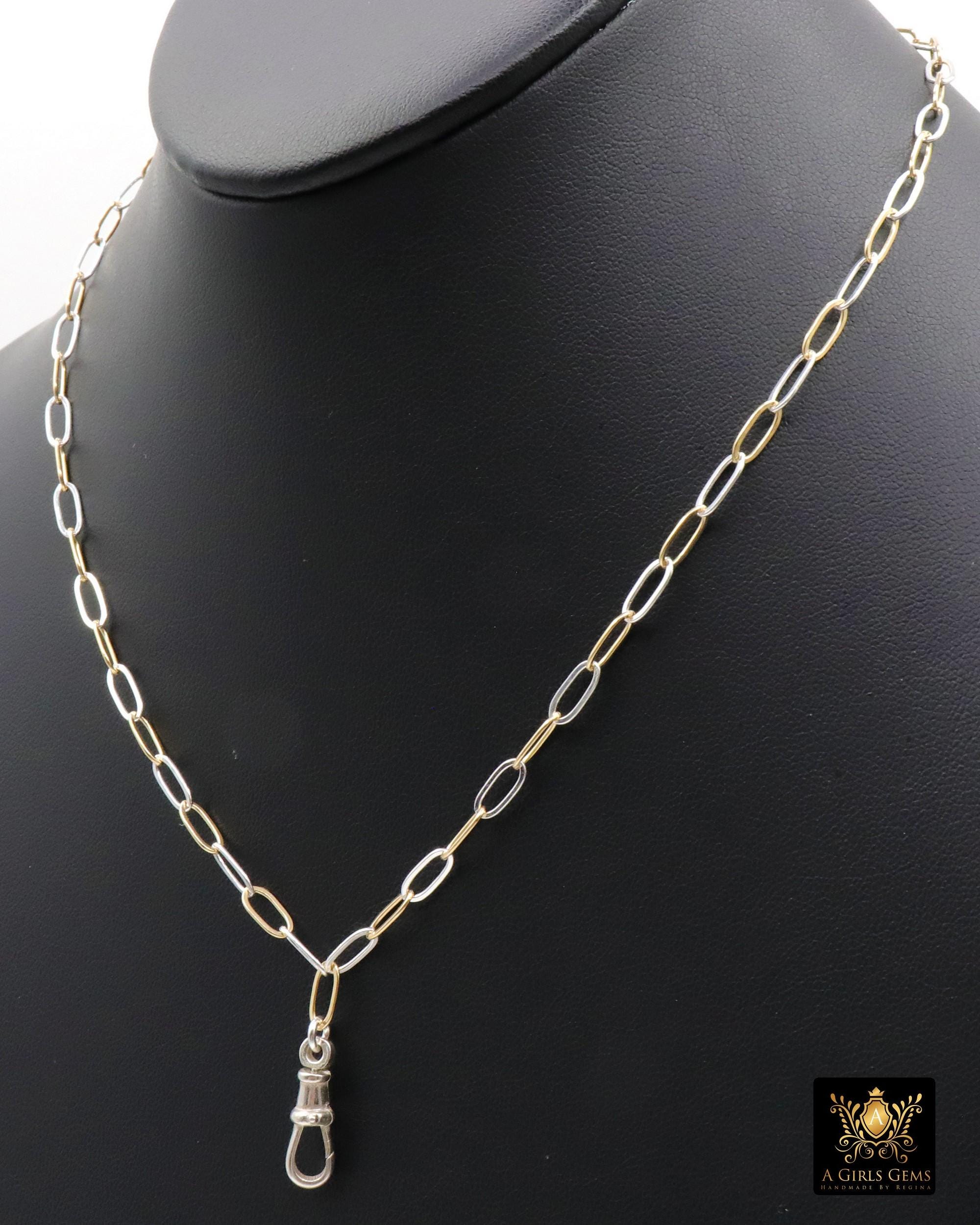 Mixed Metal 14 K Gold Filled Paperclip Chain Necklace, 925 Sterling Silver Oval Links, With Swivel Fob Clip To Clip on Ring of Your Charms and Pendants, Gifts For Her