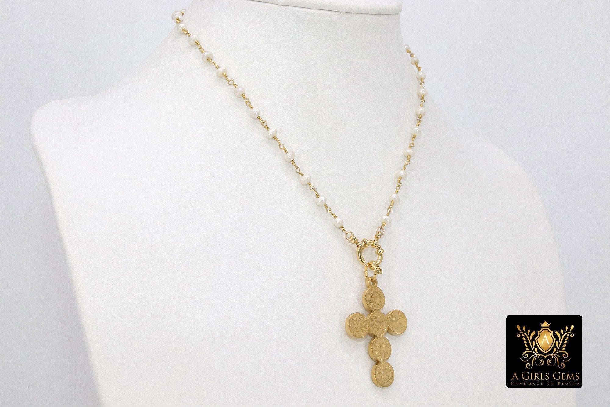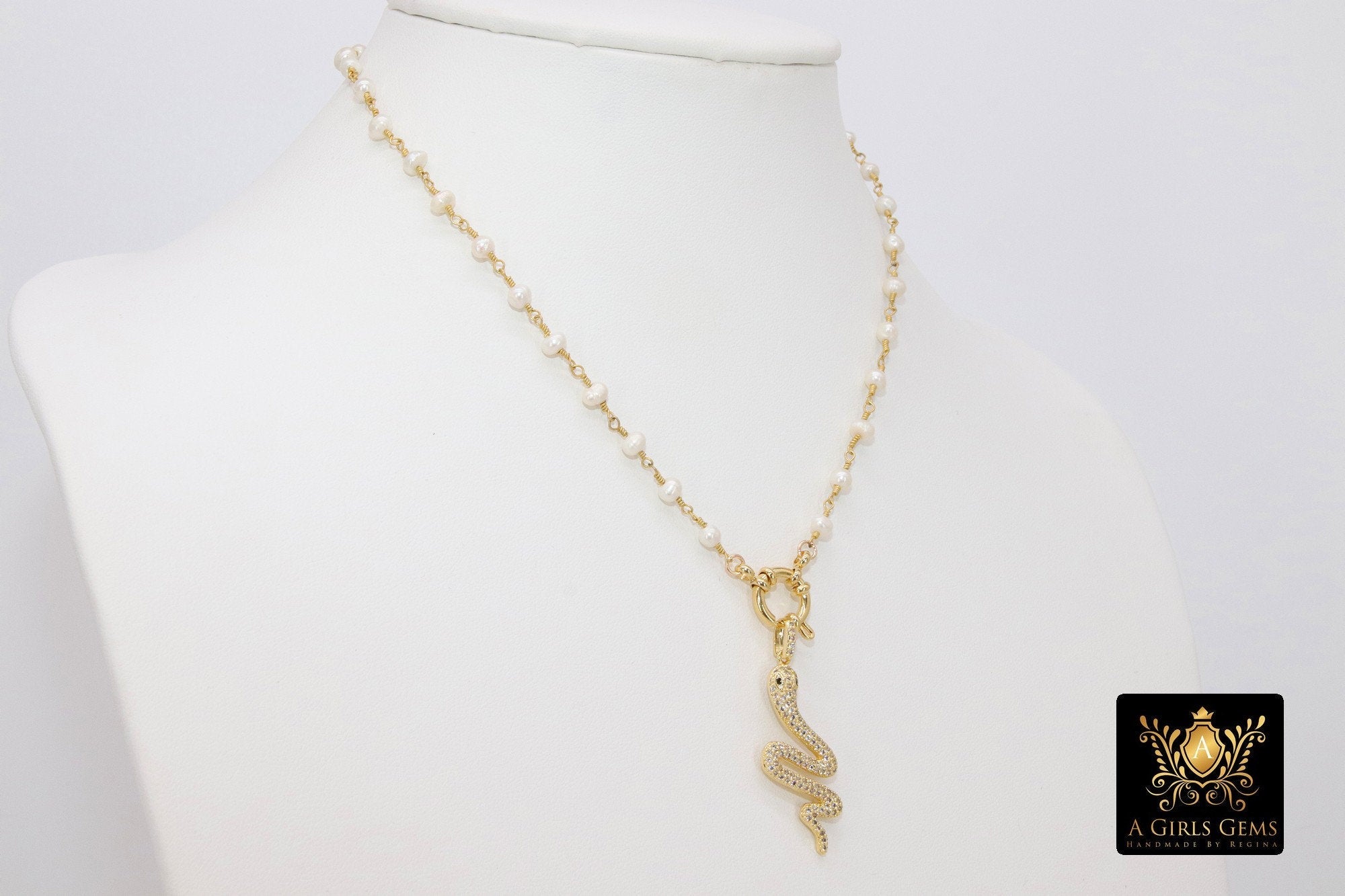This necklace is on our Freshwater Pearl Rosary Dainty Chain. This is for the necklace only. The snake, crosses and keys are extra. We also offer this in 14 K Gold Filled chains. Our most popular choices are below.