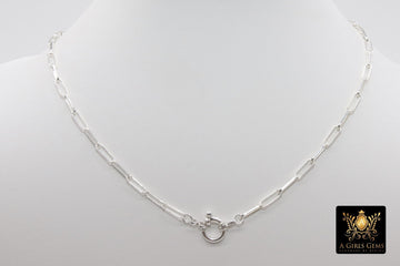 925 Sterling Silver Swivel Front Clasp Necklace, Silver Drawn Rectangle Chain, Fob Clip Clasp Choker