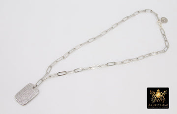 Dog Tag Necklace, CZ Silver Rectangle Pendants