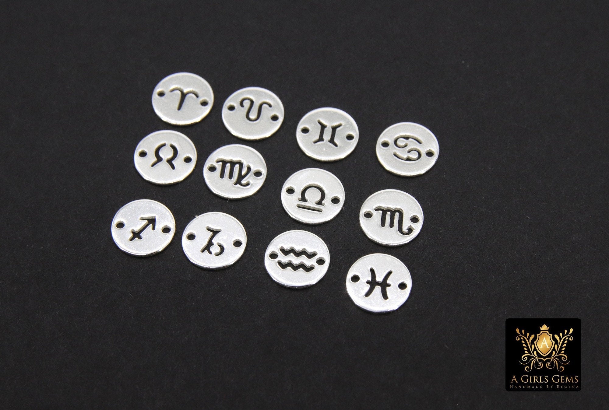 14 K Gold Filled Horoscope Connectors, 6 mm 925 Sterling Silver Zodiac Birthday Sign #3505, Round Astrological Symbol