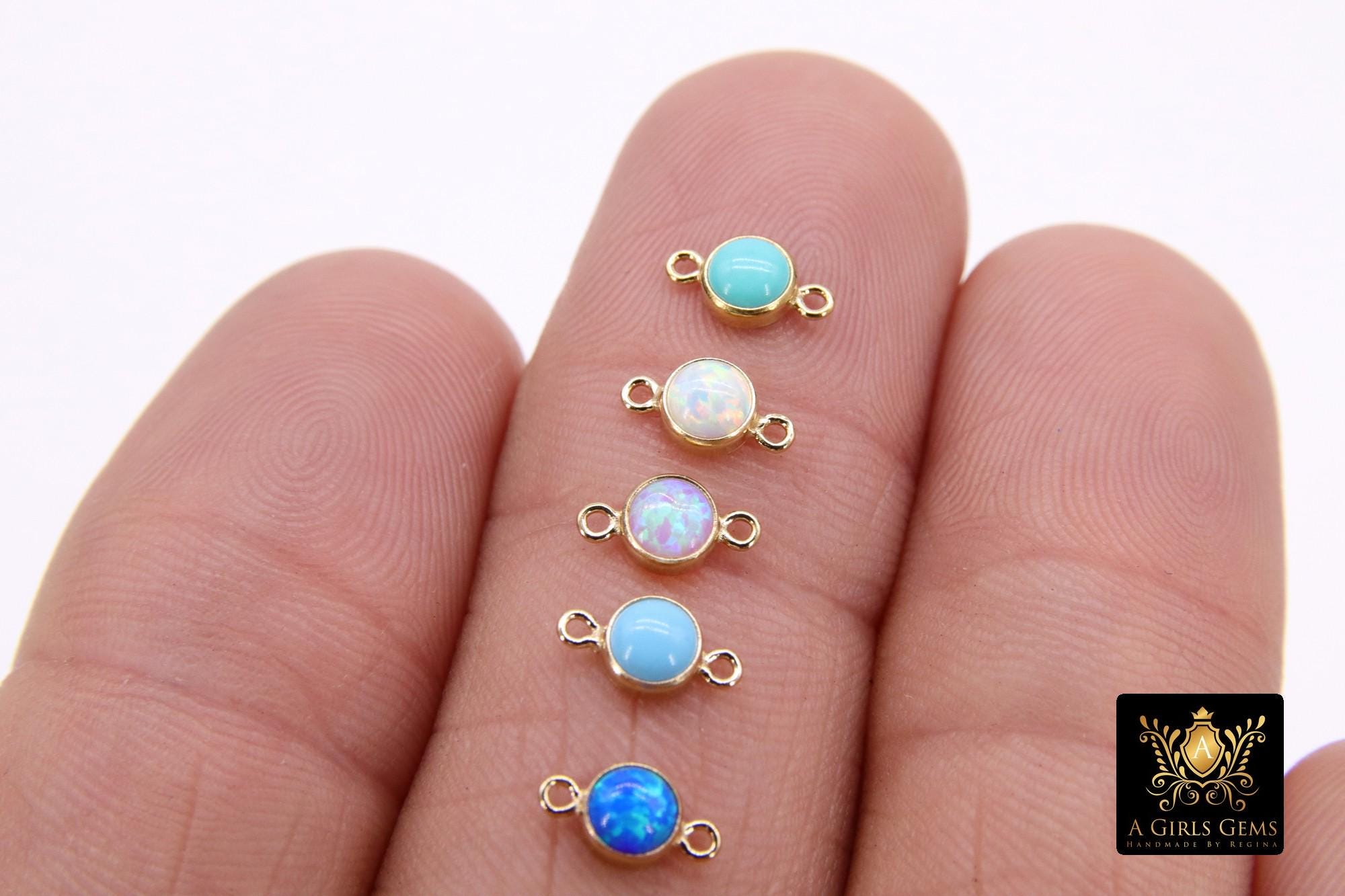 14 K Gold Filled Solitaire Connectors, 4 mm White Opal Links #2813, Pink CZ Style Genuine 14 20 Gold Blue Opal