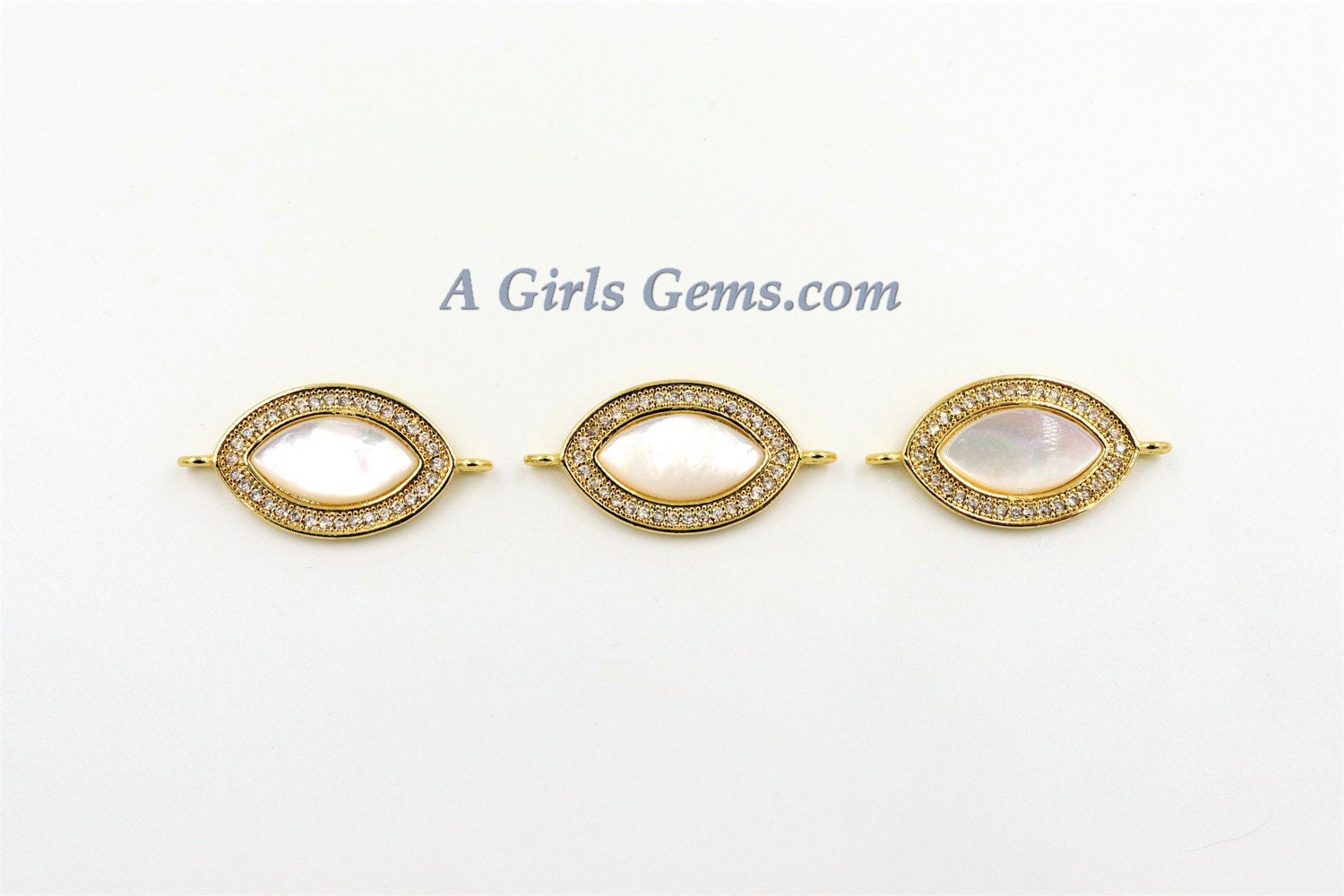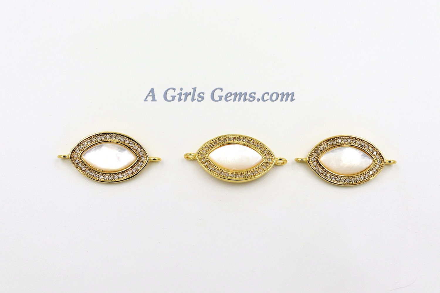 CZ Micro Pave White Pearl Connectors, Mother of Pearl Gold Links for Bracelets, 14 x 24 mm Gold Eye Necklace Connectors