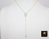 14 K Gold Cross Rosary Necklace, Virgin Mary Rosary Sequin Chain Necklace, Dainty Medallion