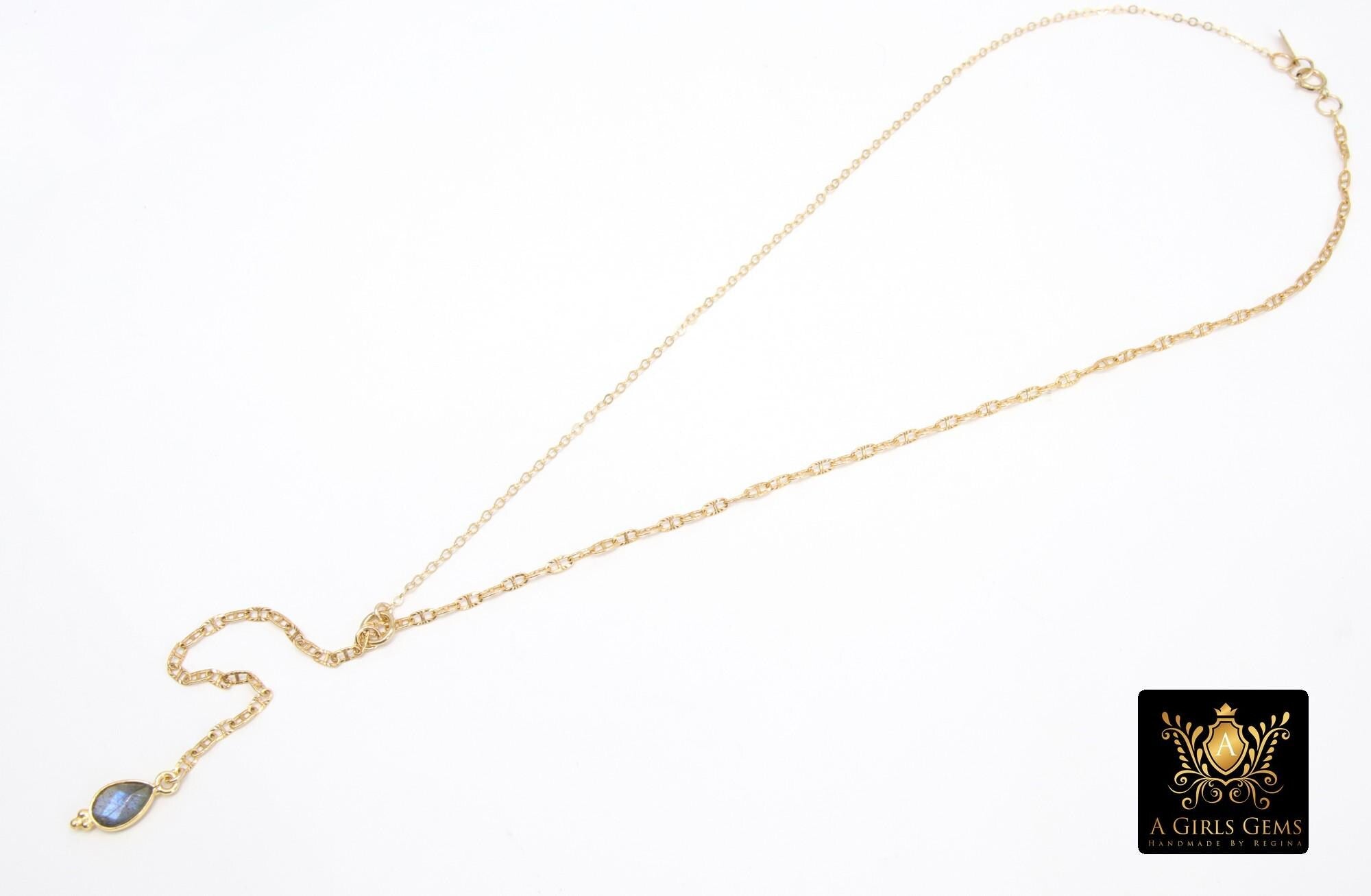 14 K Gold Filled Teardrop Necklace, Gold Mariner Anchor Chain Labradorite Lariat #433, Personalized Drop Necklace