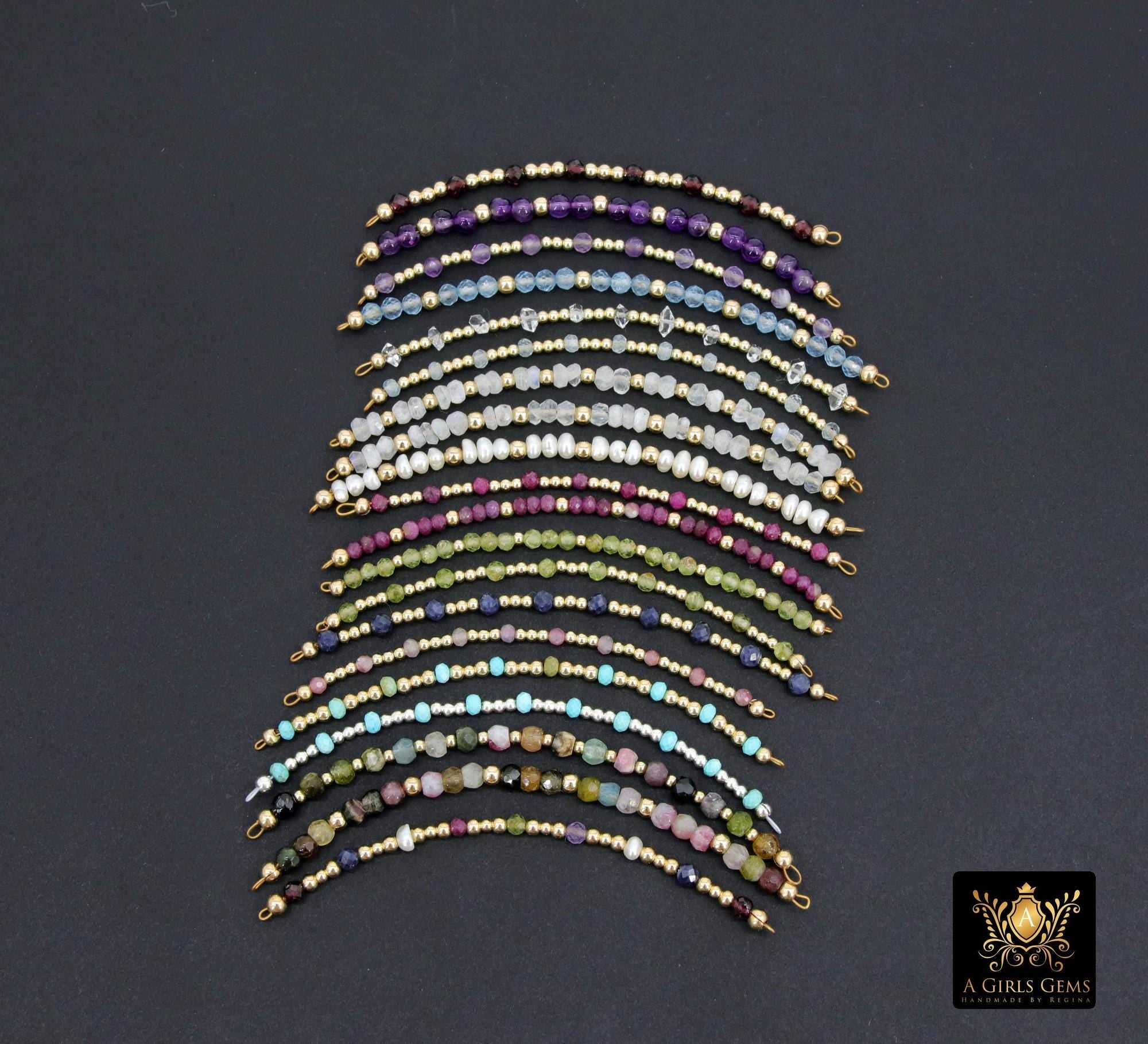Genuine Permanent Jewelry 14 K Gold Filled or 925 Sterling Silver Connector Bars, Long Beaded Link Findings, Faceted Birthstone Beads, Wire Wrapped, Mothers Day Gifts, Husband Wife Gifts For Her or Him