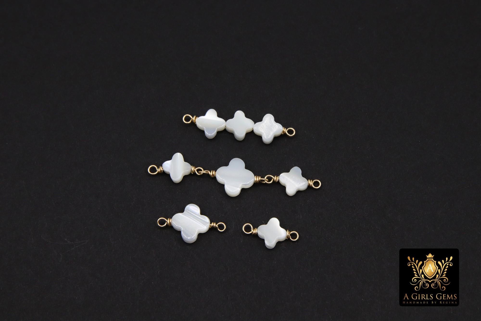 Genuine 14 K Gold Filled Mother of Pearl Connector Bars, Permanent Jewelry, Wire Wrapped Beaded Shell Beads, Quatrefoil Clovers Findings, Mothers Day Gifts, Husband Wife Gifts For Her or Him
