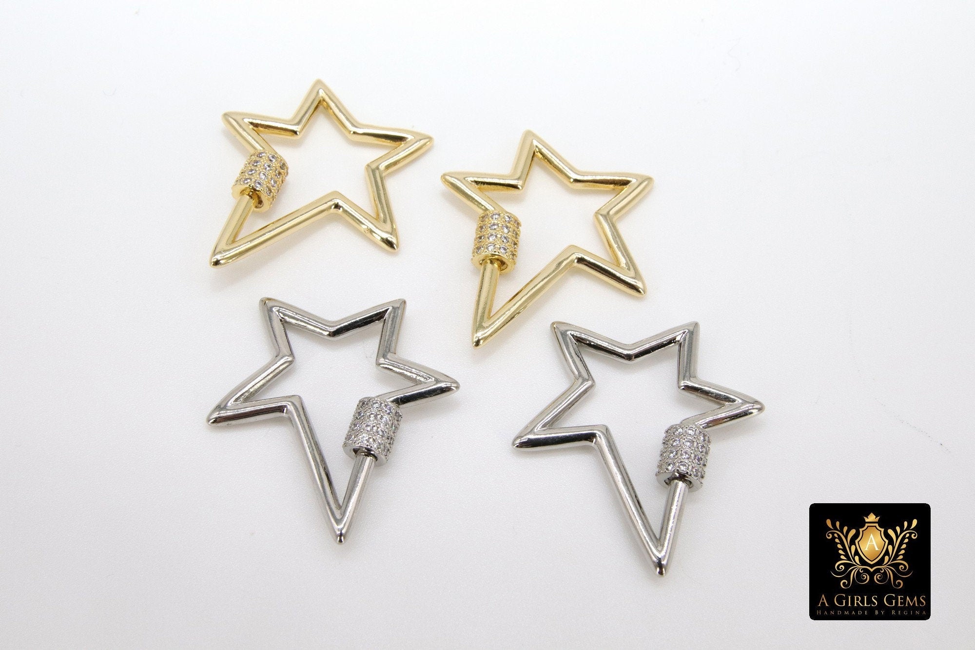 Carabiner Star Screw Clasps, Silver, Gold Large Cubic Zirconia Black Necklace Locks