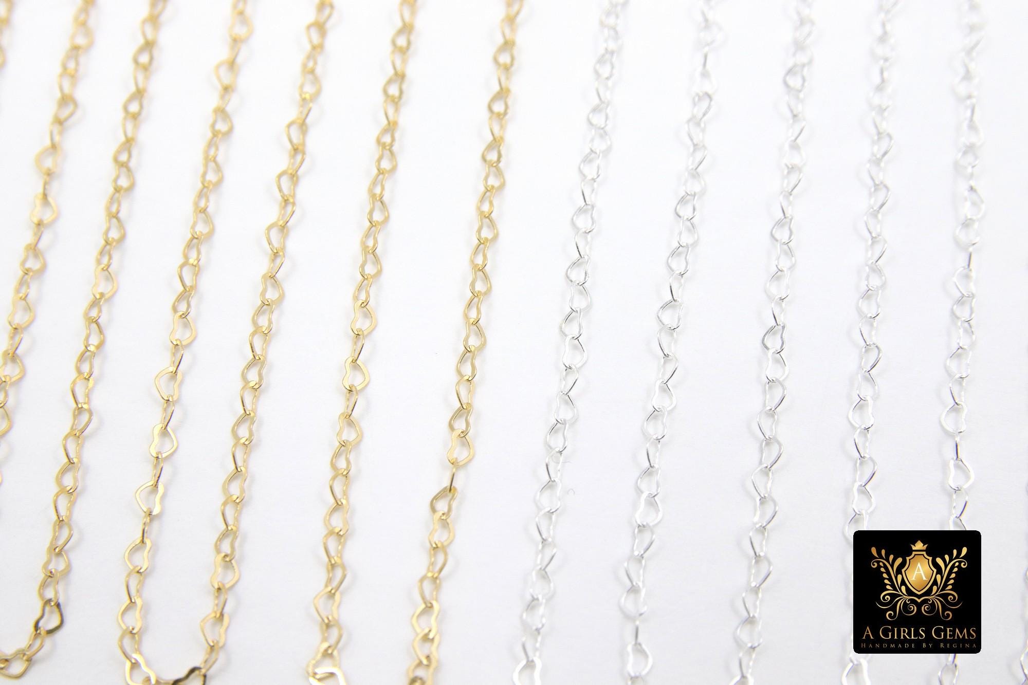 Gold Filled Heart Chains, 2.6 mm 925 Sterling Silver, 14 K Gold Filled Dainty Heart Shaped CH# 886