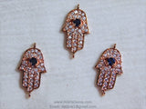 Turquoise Hamsa Hand Charm - Hamsa Hand Connector Bead, CZ Micro Pave Rose Gold Plated with Sapphire CZ, Protection Jewelry Making