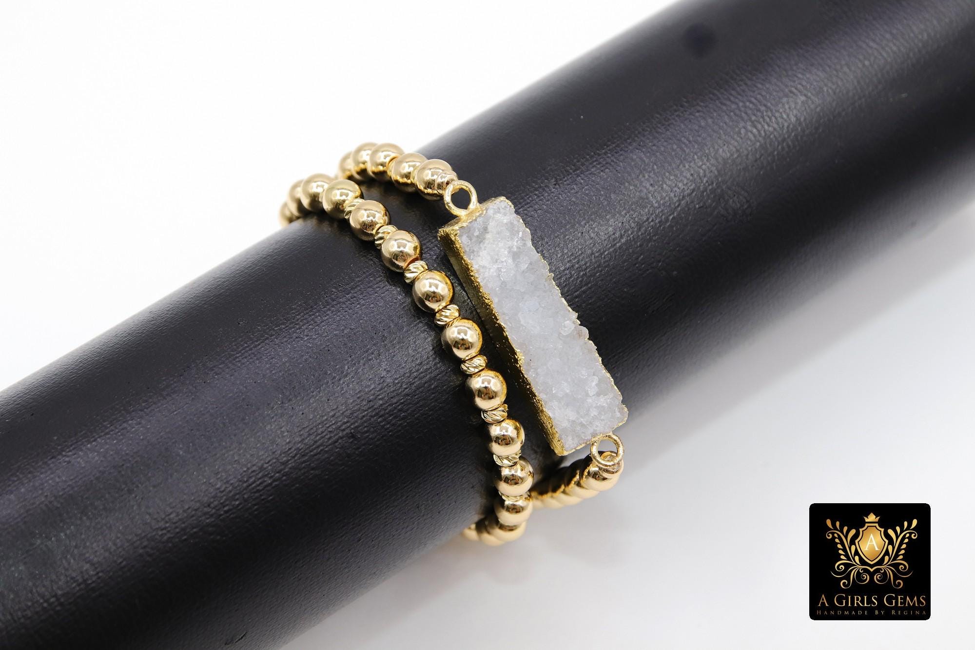 White Druzy Bar Beaded Bracelet, Rectangle Druzy Gold Stretchy Bracelet by Regina Harp Designs, Gifts For Mom or Her